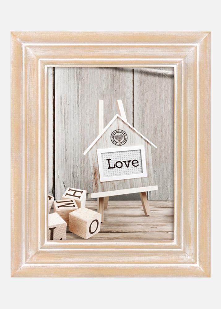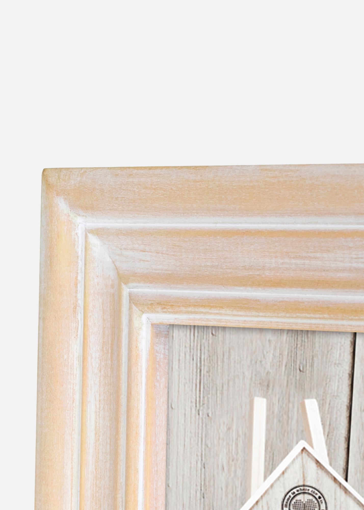 Adj emlékeidnek egyedi keretet bájos vintage stílusú képkeretünkkel. Kopott fa színű felületével és finom fehér részleteivel minden kép művészeti alkotássá válik. Ez a képkeret 13x18 cm-es méretű, ideális kedvenc fotóid vagy kis műalkotásaid kiemelésére.