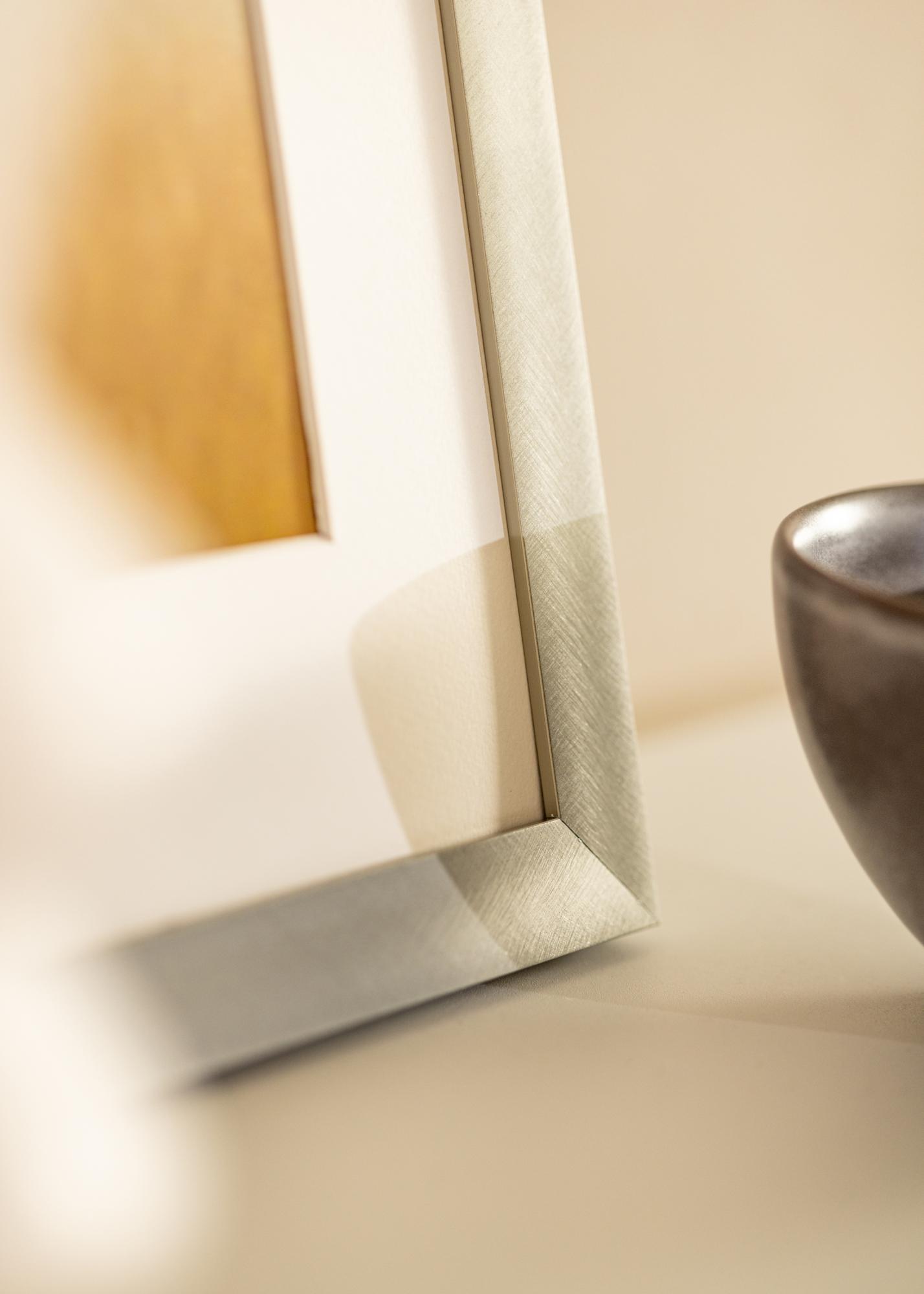 Modern, elegáns képkeret csiszolt alumíniumból, amely jól illeszkedik mindenféle fényképhez, poszterhez és akvarellhez semleges színével. A diszkrét megjelenése révén a keret legtöbb környezetbe beolvad, de különösen jól illeszkedik a hűvös északi stílushoz. Karcsú kialakítása ellenére a keret masszív és stabil érzést kelt. Vásároljon hozzá egy paszpartut, amely kiegészíti a keretezést és elegánsan kiemeli a képet. Akassza össze a festményt más motívumokkal a fémkeretekben.