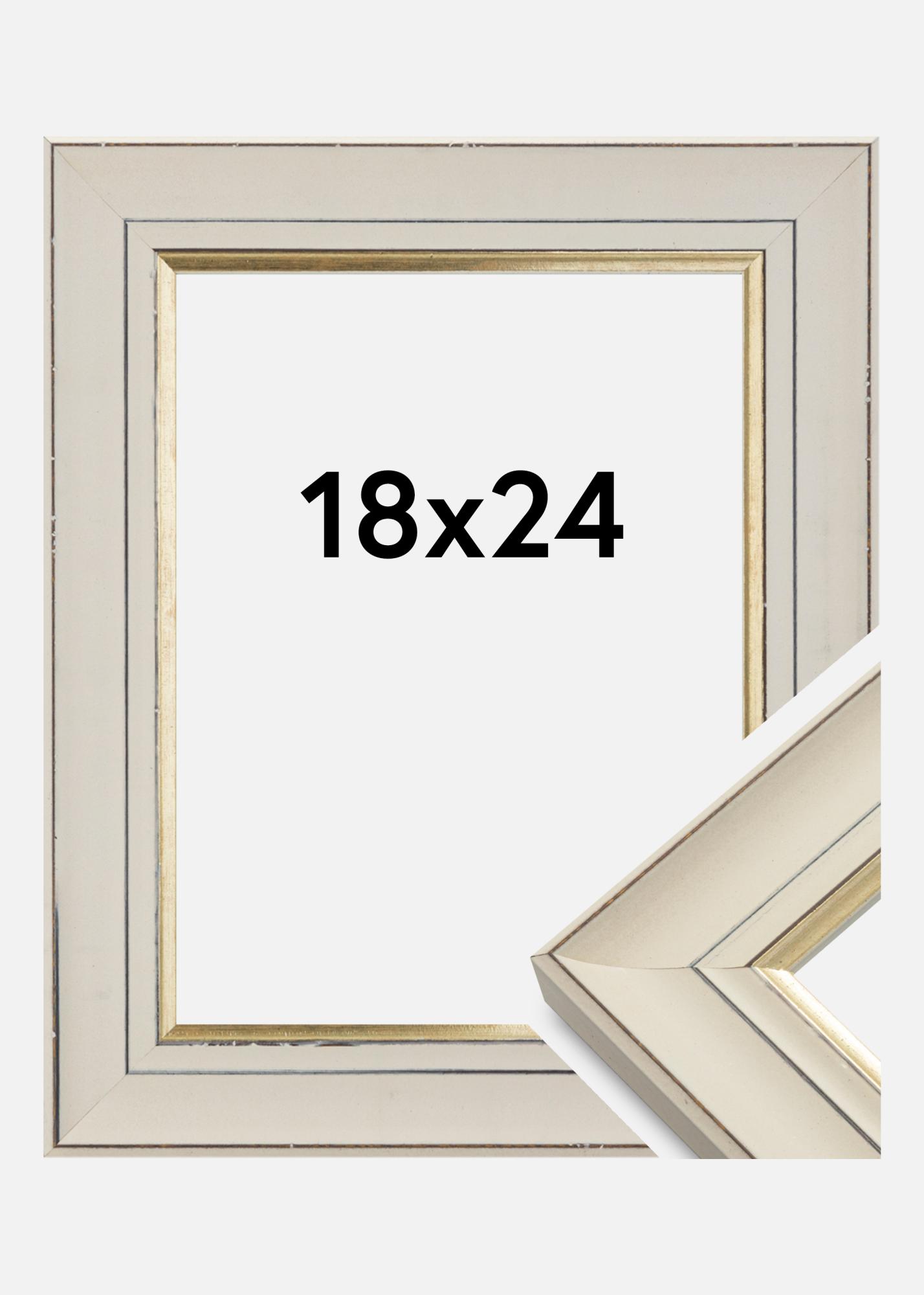 Klasszikus stílusú képkeret, izgalmas retro érzettel. A keret fehér, kopottas profilú, szép aranyszegéllyel közvetlenül a motívum mellett, semleges kialakítása és színválasztása révén ez egy keret, amely szinte minden környezetbe és mindenféle motívumhoz illik.