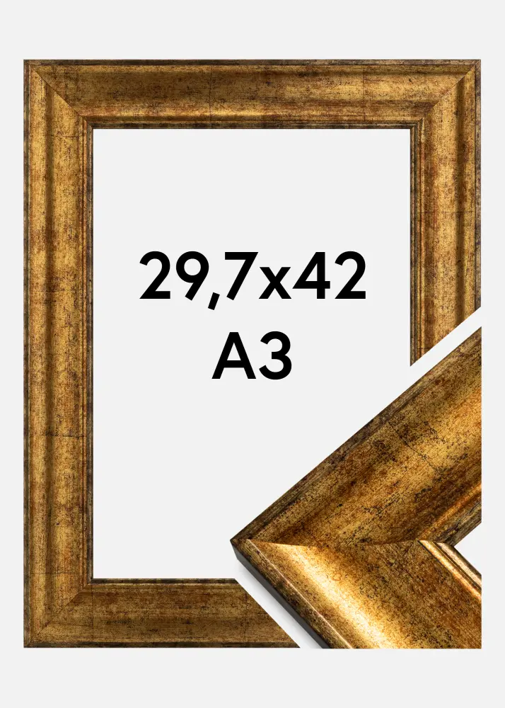 Saltsjöbaden Arany több méretben kapható, ebből a keret olyan képekhez illik, amelyek mérete 29,7x42 cm (A3).