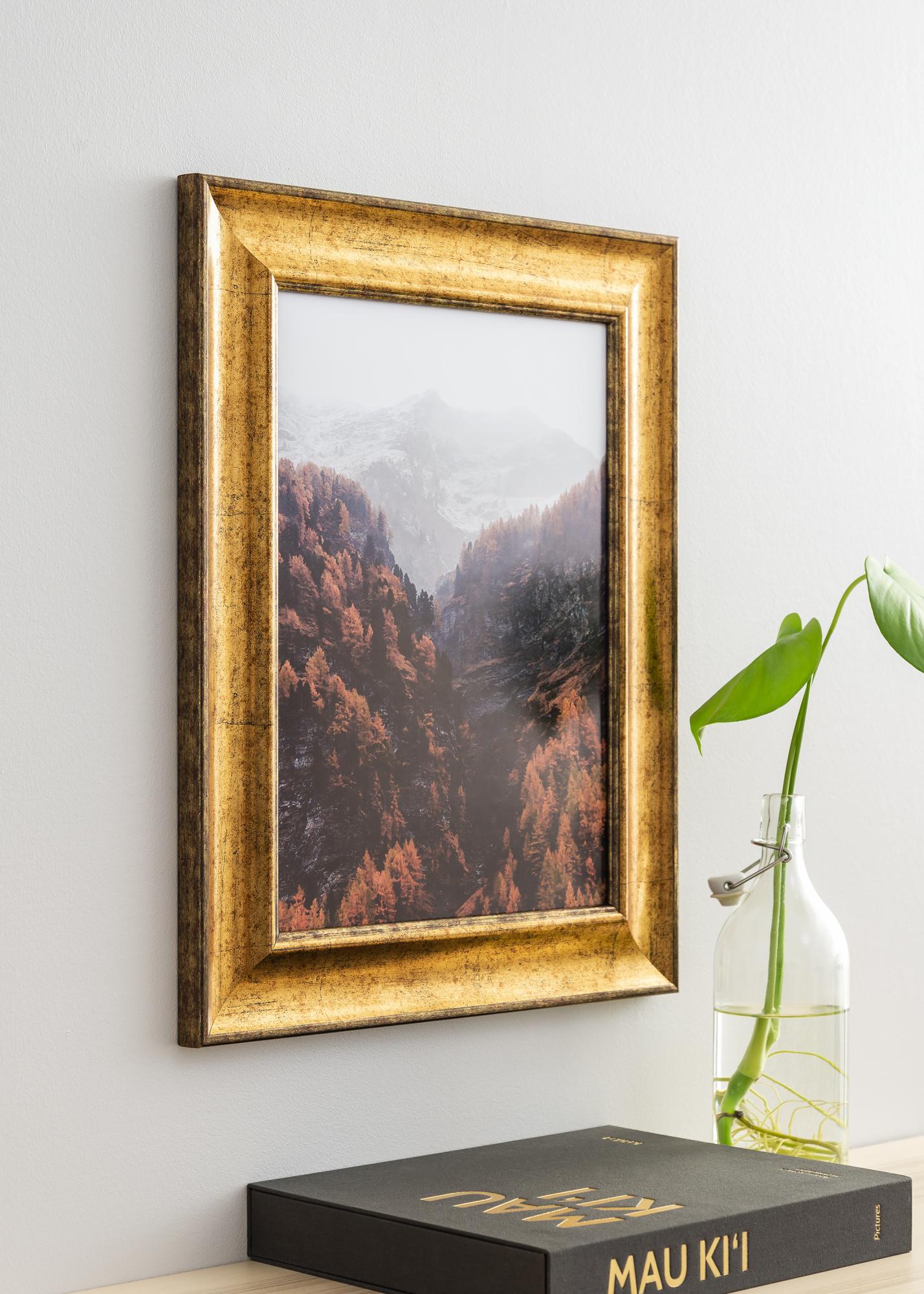 Alakítsa át műalkotását vagy fényképét egy elegáns fókuszponttá aranykeretünkkel és fekete paszpartujával. A keret matt arany színe kiegészíti a fekete paszpartut, és kifinomult kontrasztot teremt, amely kiemeli képét a 24x30 cm-es méretben. A 64 mm-es szélesség nagyvonalú és luxusérzetet kölcsönöz, míg a 23 mm-es mélység jellegzetes profilt ad.