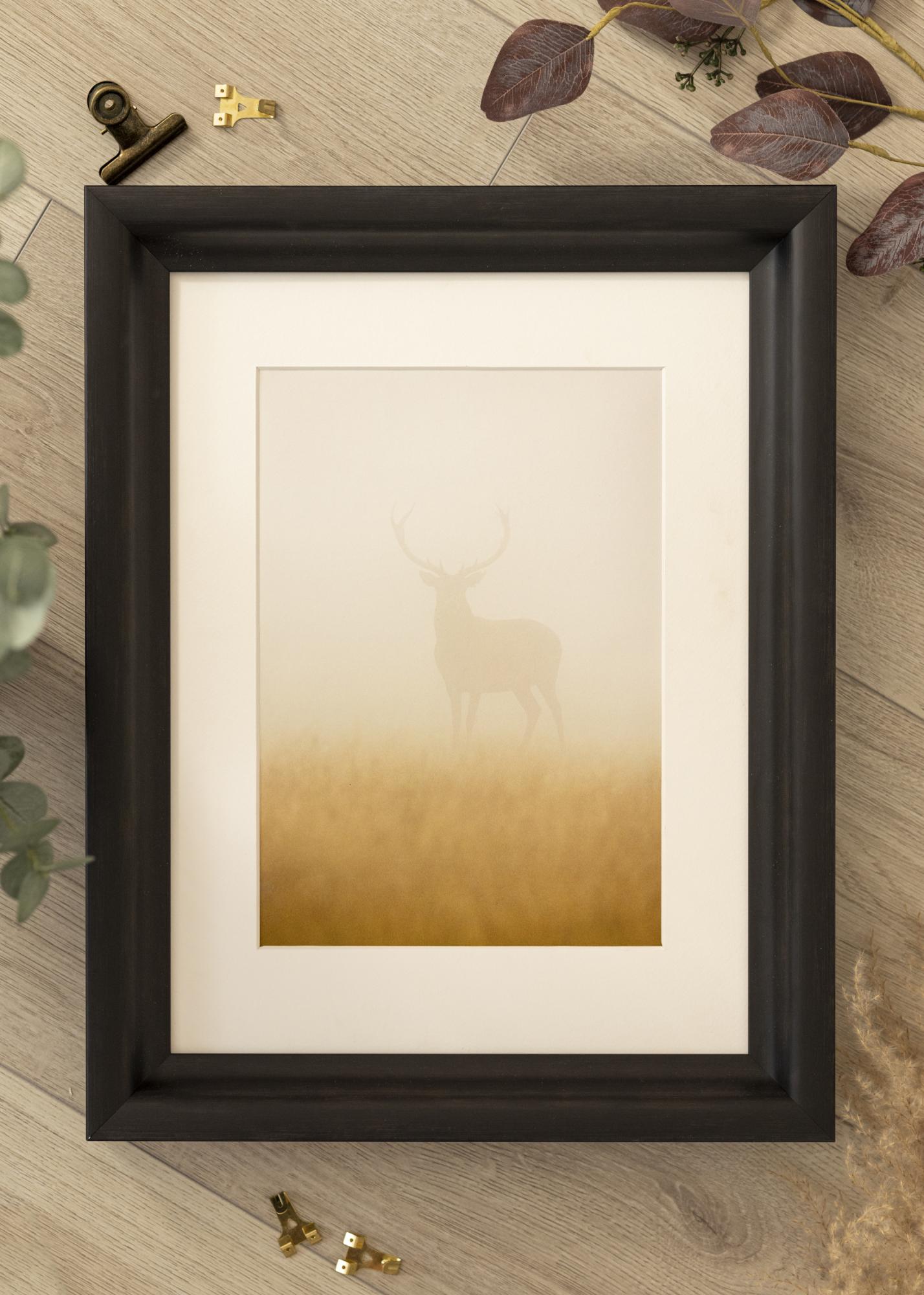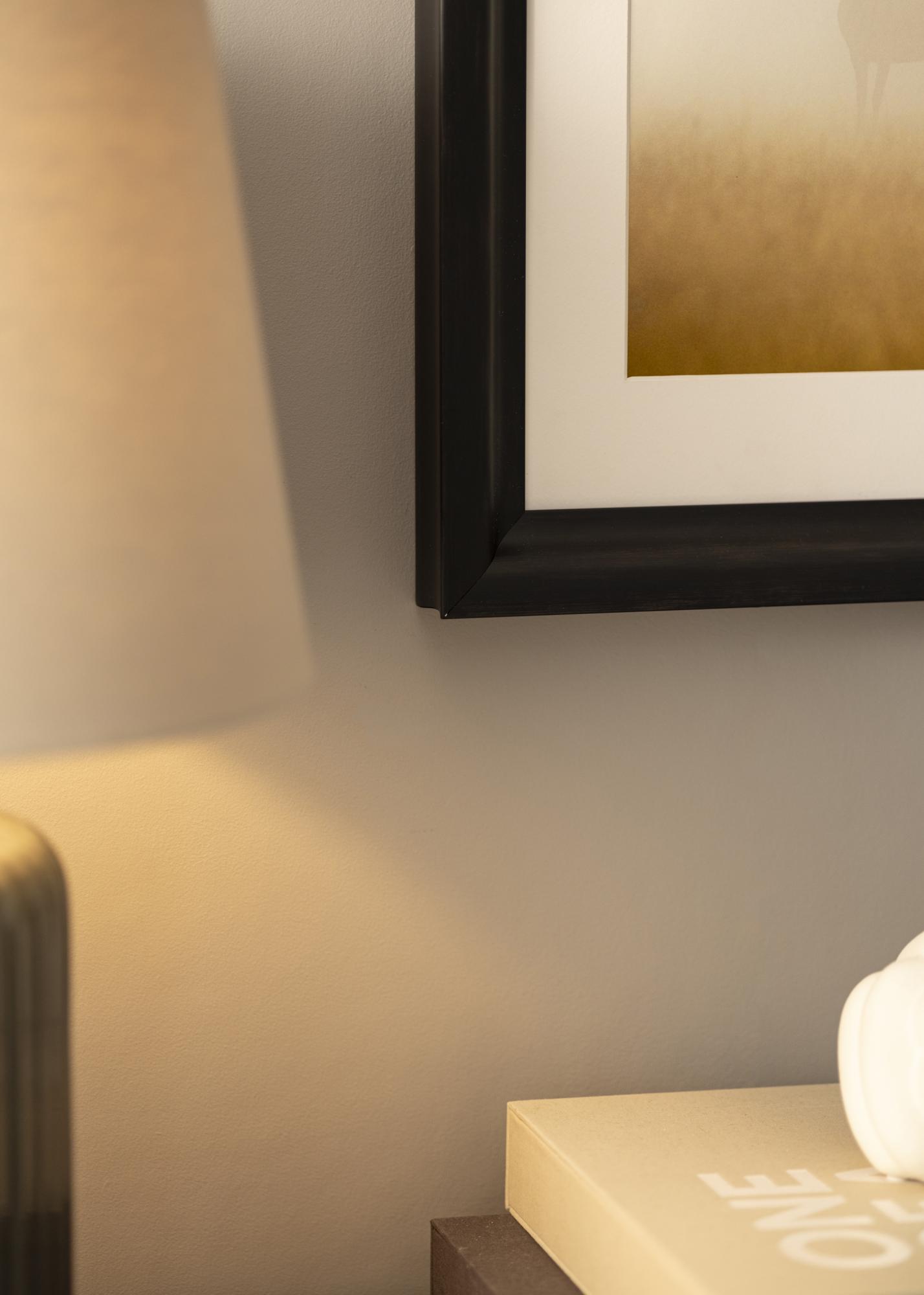 Hagyományos képkeret sötét fekete-barna színben, amely közelebb áll a feketéhez, mint a barna. Kiváló választás, amikor egy sötét árnyalatú, egyedi méretű keretet keresel, ahol a fa struktúrája átszűrődik.
