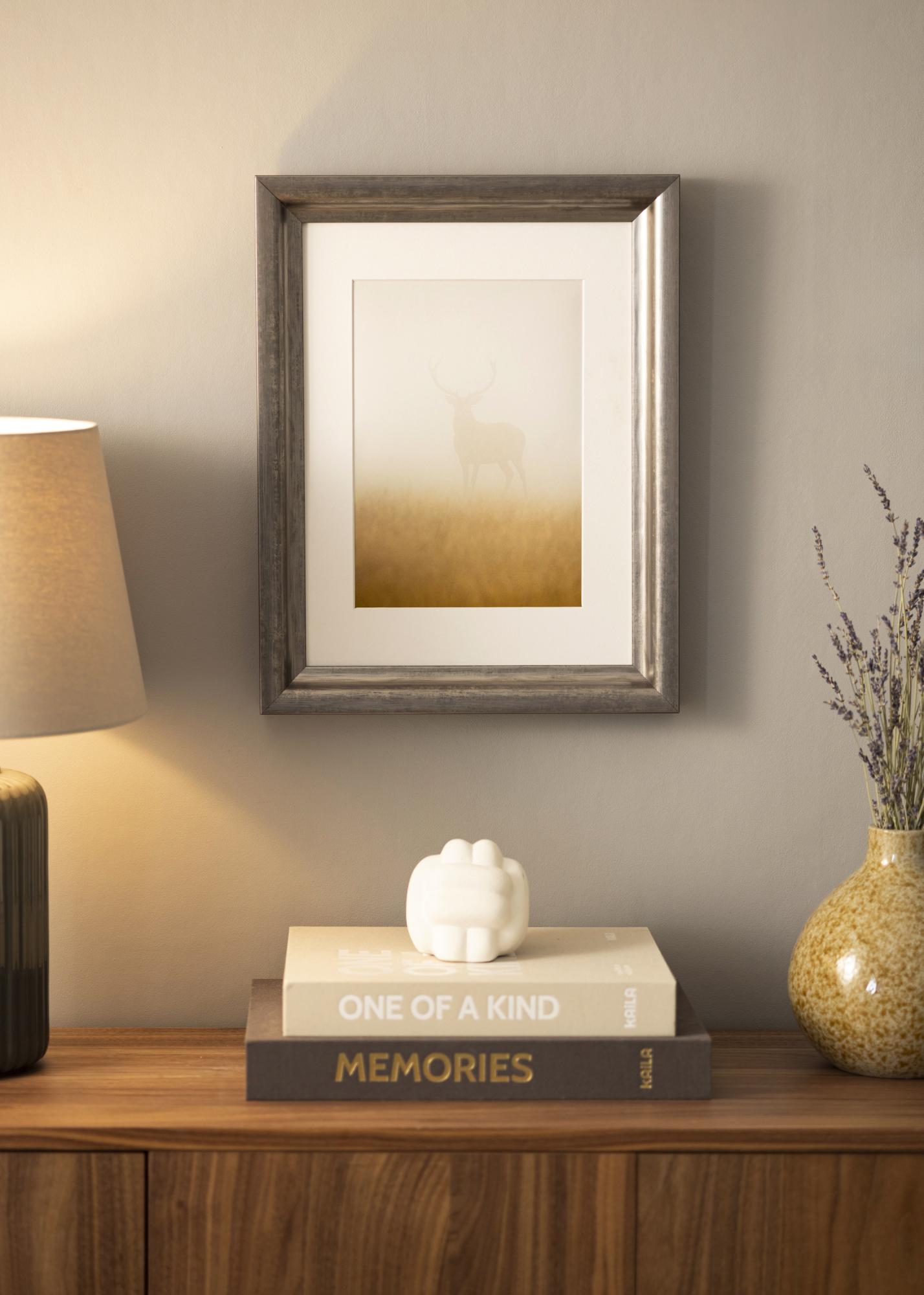 Klasszikus képkeret, ahol te magad választhatod meg, milyen nagy keretet szeretnél. Széles és mély profiljával garantáltan olyan keret, amelyet észrevesznek. A keretnek ezüstszínű grafit árnyalata van, kellemes színárnyalatokban, amelyek jól illenek az olyan képekhez, amelyekre külön figyelmet szeretnél fordítani.