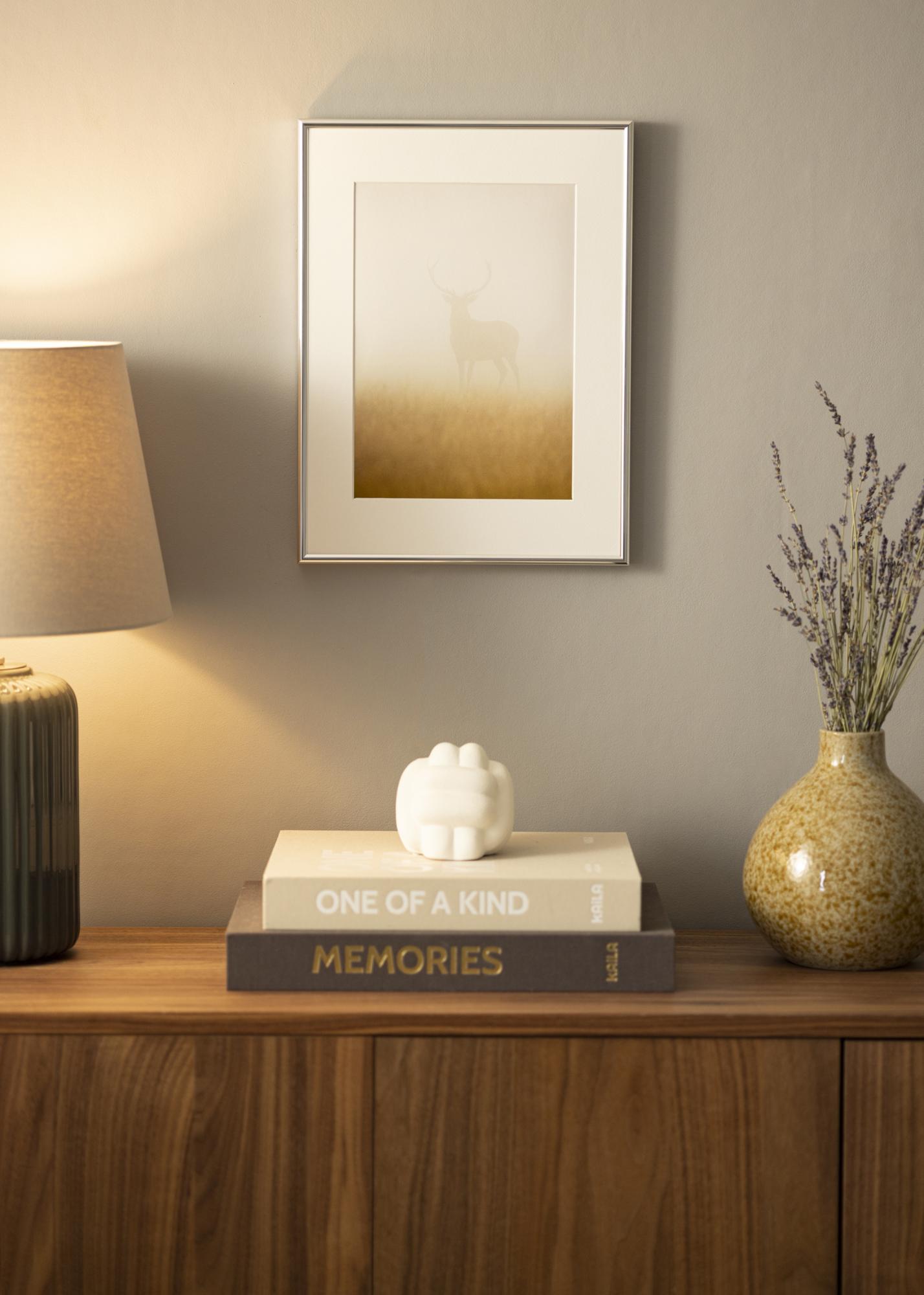 Modern magasfényű ezüstkeret kefélt oldalakkal, amelynek 26 mm mély profilja van. Ezáltal a motívum kiemelkedik a falból, és lenyűgöző 3D hatást kelt. Tökéletes, ha egyszerű ezüstkeretet keresel, ami elegáns keretet ad képeidnek.