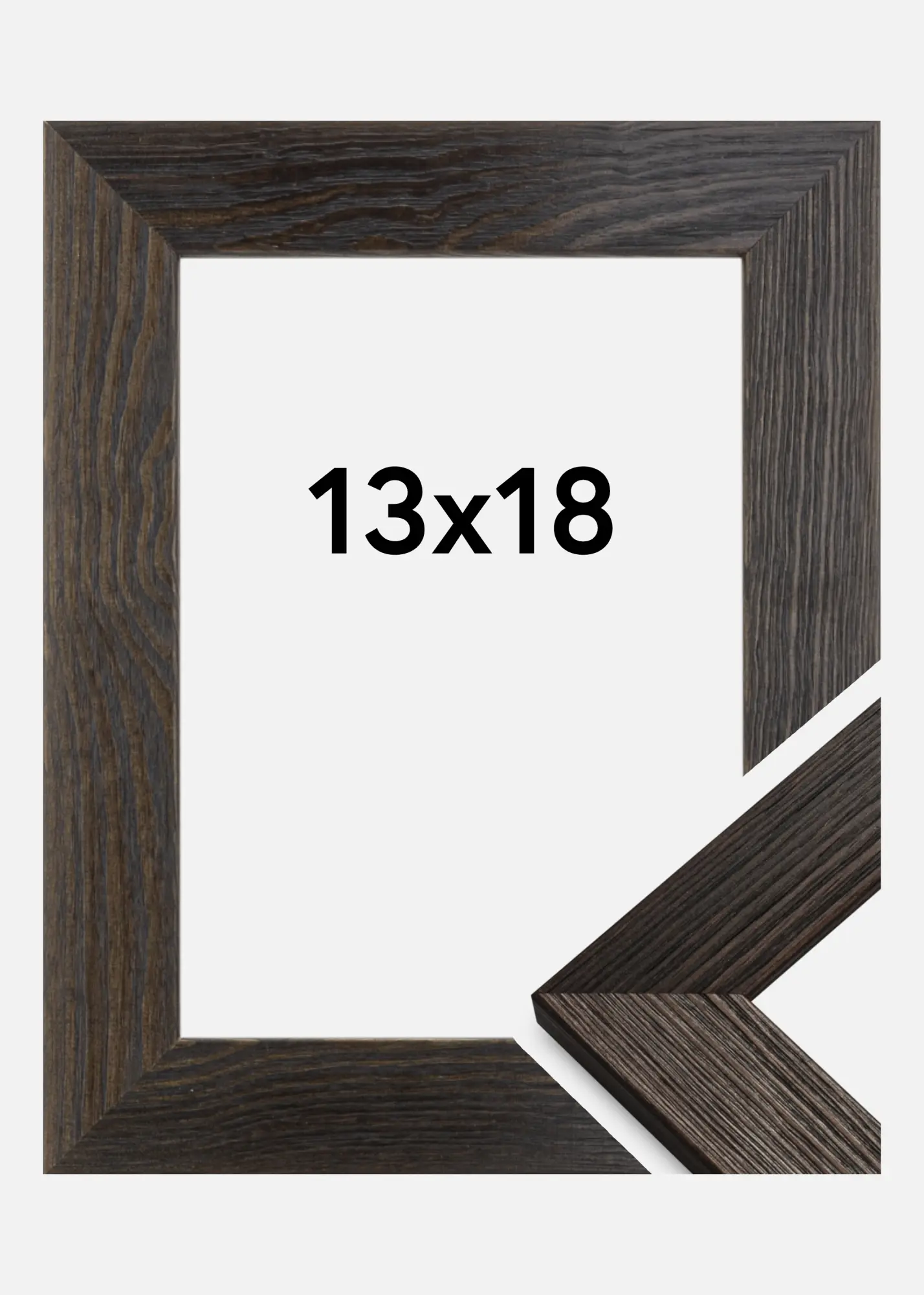 Masszív barna fa keret látható faerezetekkel és széles profillal. Jól illik, ha sötét fa keretet keres természetes érzéssel. Tökéletes környezeti képekhez és tájképekhez.