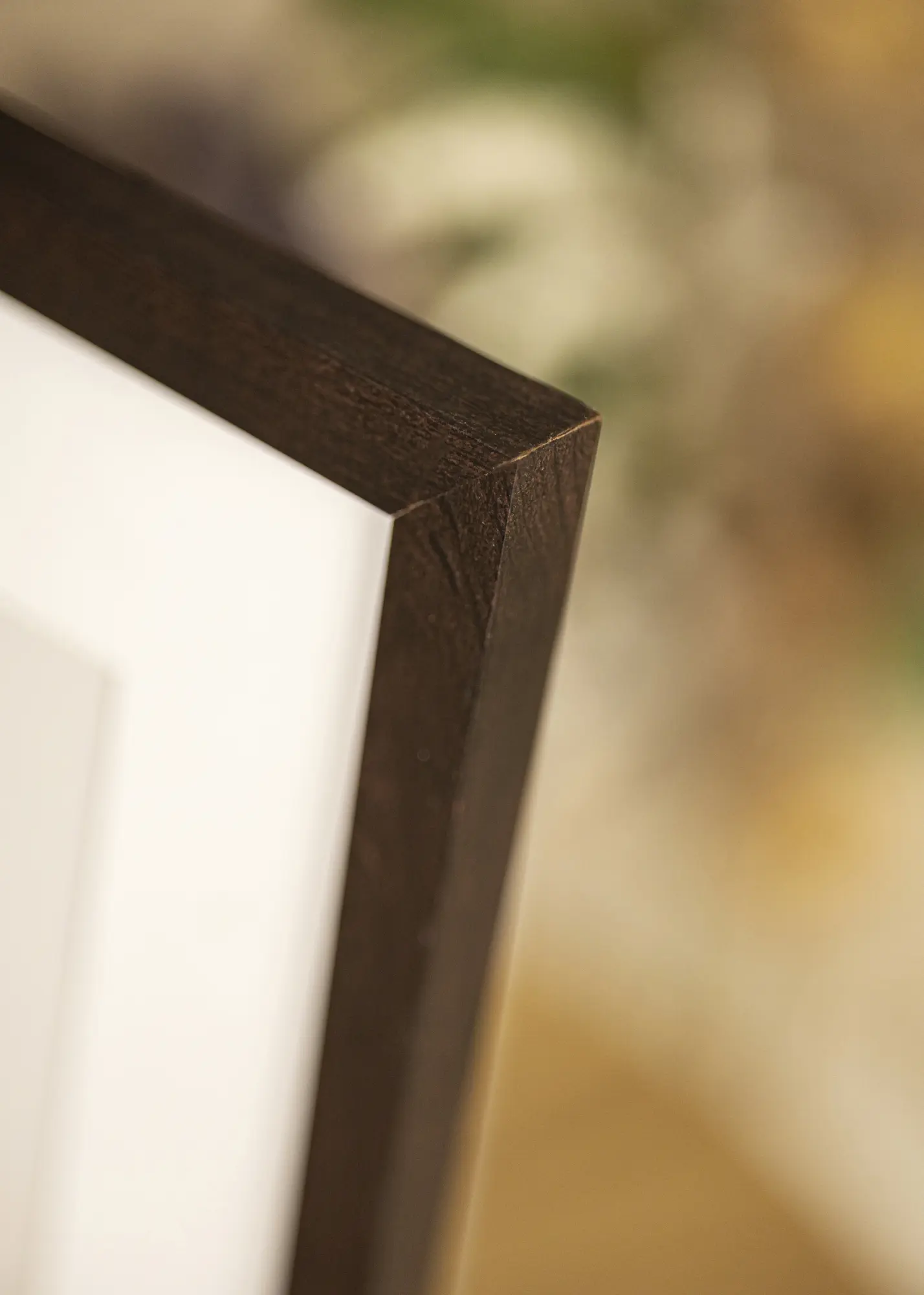 Ez egy dió árnyalatú képkeret, amely egy valamivel sötétebb fafajta, amelynek színe jól kontrasztál például fekete-fehér fényképekkel vagy természet témájú képekkel. Ha ráadásul diófa bútorok vagy egyéb lakberendezési részletek is találhatók az otthonában, akkor ez a keret különösen jól fog illeszkedni!