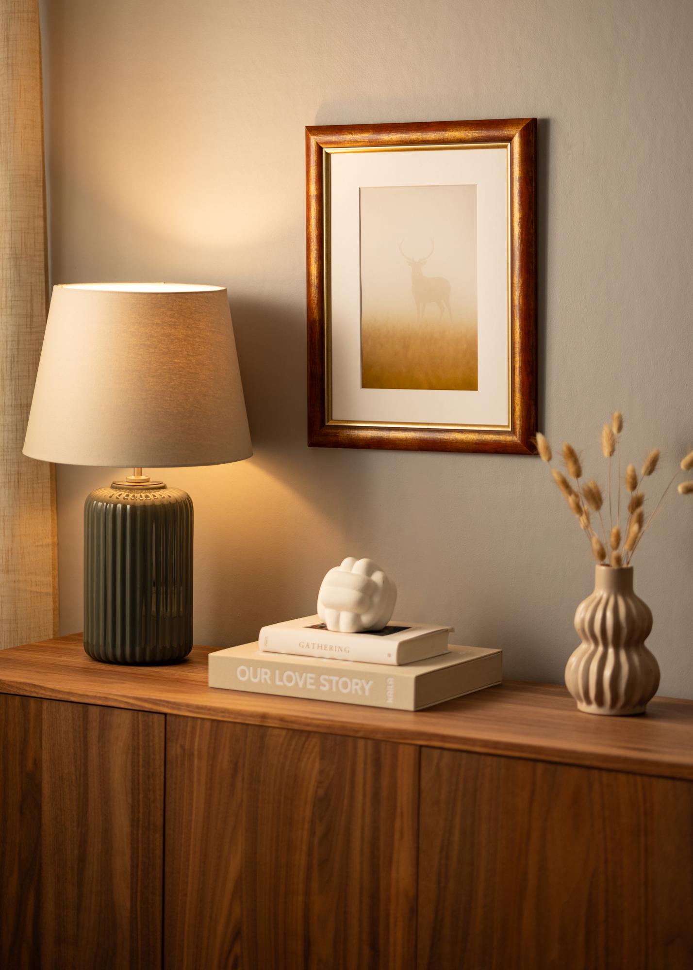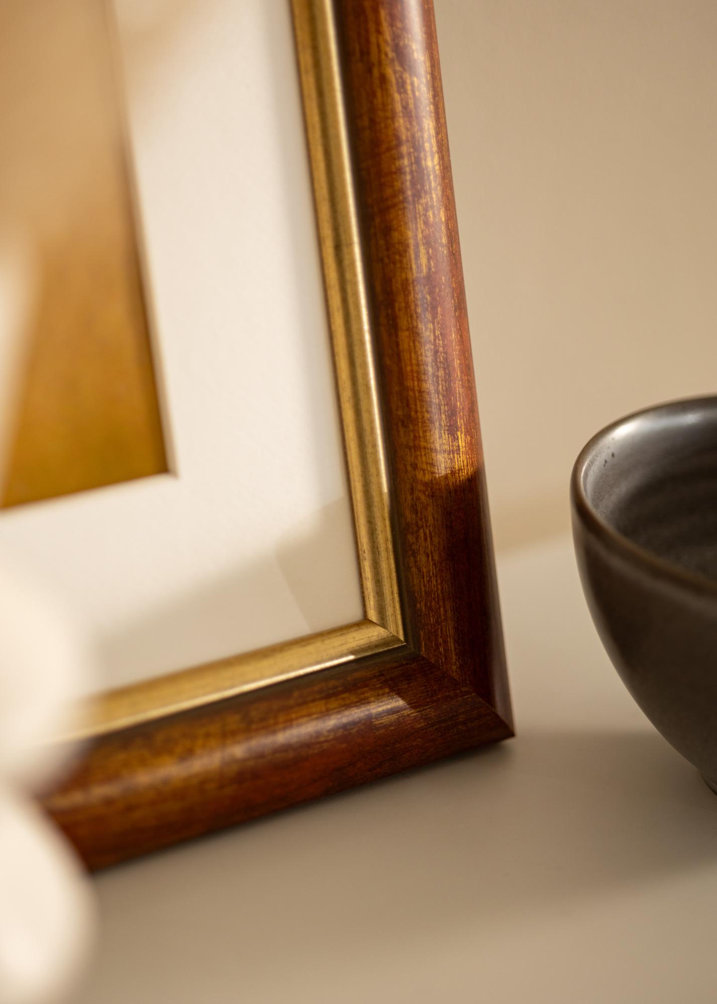 Időtlen faléckeret gyártva Finnországban, elegáns vöröses tónusú fa felülettel és aranyszéllel közvetlenül a motívum mellett. Harmonikus érzést kölcsönöz a motívumnak. A keret széles profilja 41 mm és 19 mm mélysége extra mélységet ad a keretezésnek.