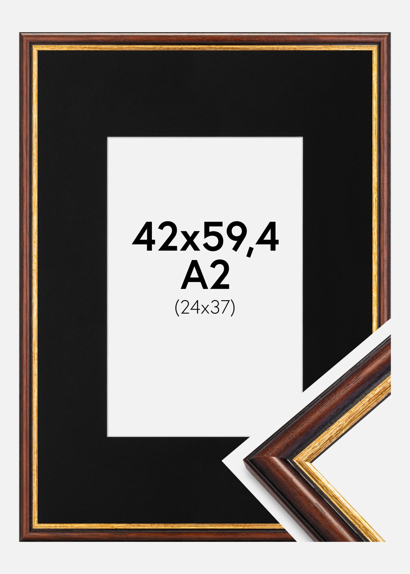A keret matt arany felülettel rendelkezik, ami luxusos és kifinomult érzést ad a szobának. 24 mm széles és 19 mm mély, amely robusztus és minőségi keretezést biztosít. A fekete paszpartu kiegészíti az arany keretet, és vizuális szünetet teremt a kép és a keret között, ami nemcsak felerősíti a műalkotást, hanem hozzájárul is annak megvédéséhez, hogy ne érintkezzen az üveggel.