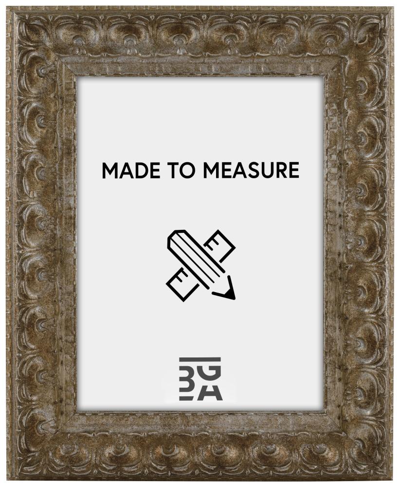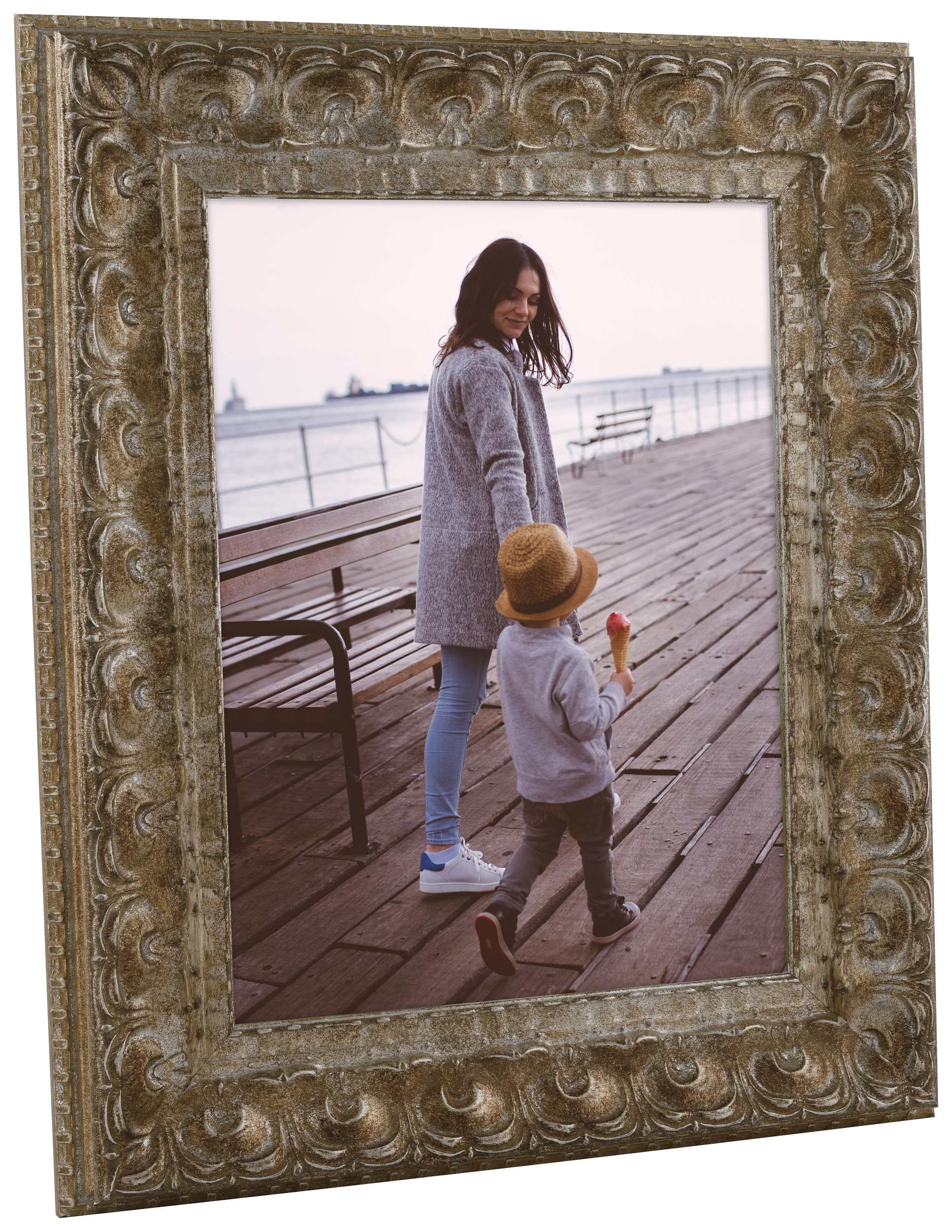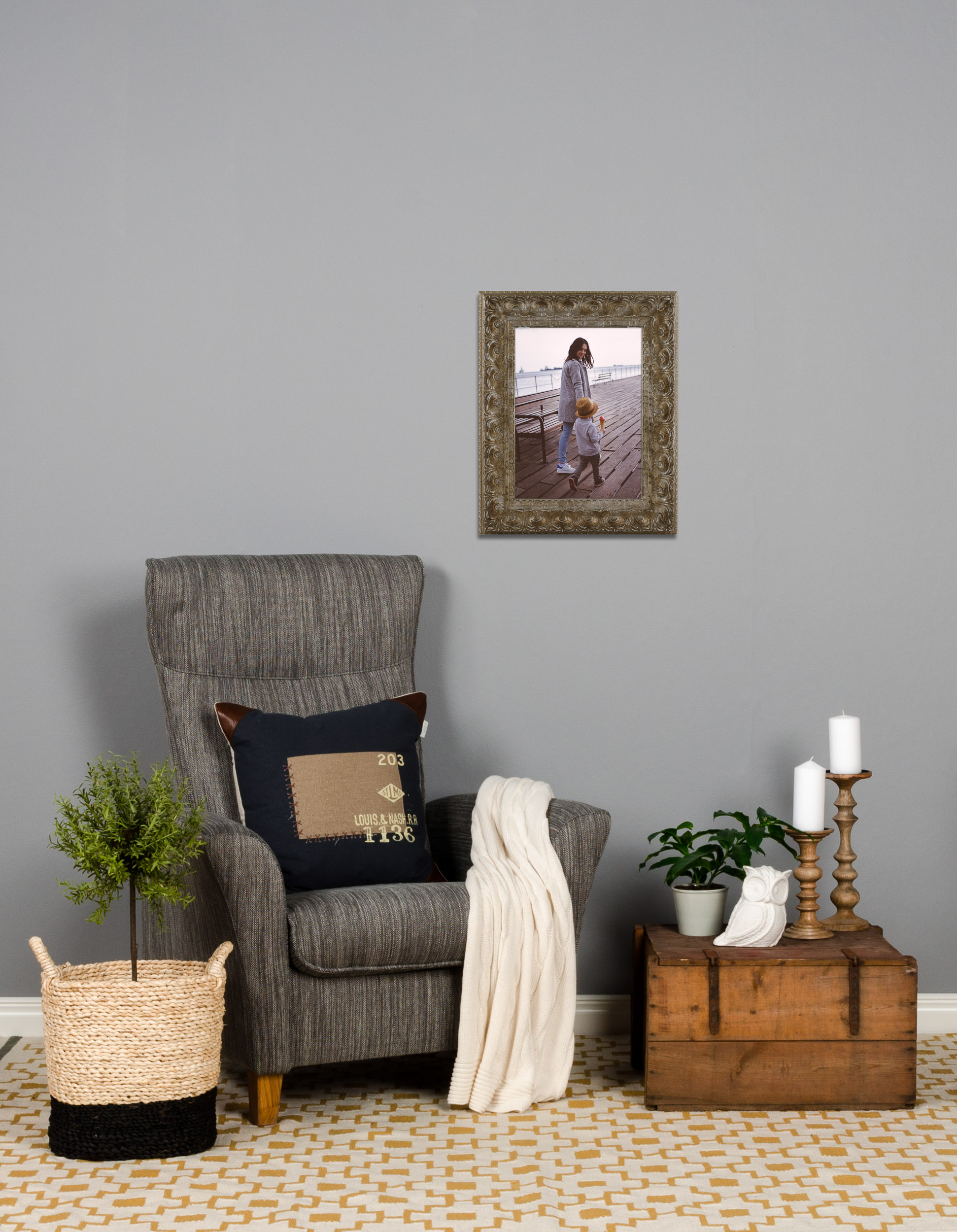 Ram Skokloster Ezüst egy elegáns és időtlen fényképkeret, amelyet saját keretműhelyünkben készítünk. Antik ezüst fényezésével és klasszikusan díszített profiljával ez a képkeret rusztikus és kifinomult érzetet kölcsönöz, amely tökéletesen illeszkedik a hagyományos belsőépítészeti stílusokhoz. A részletes díszítés és a patinázott felület egyedi karaktert ad a keretnek, amely bármely szobát feldob.
