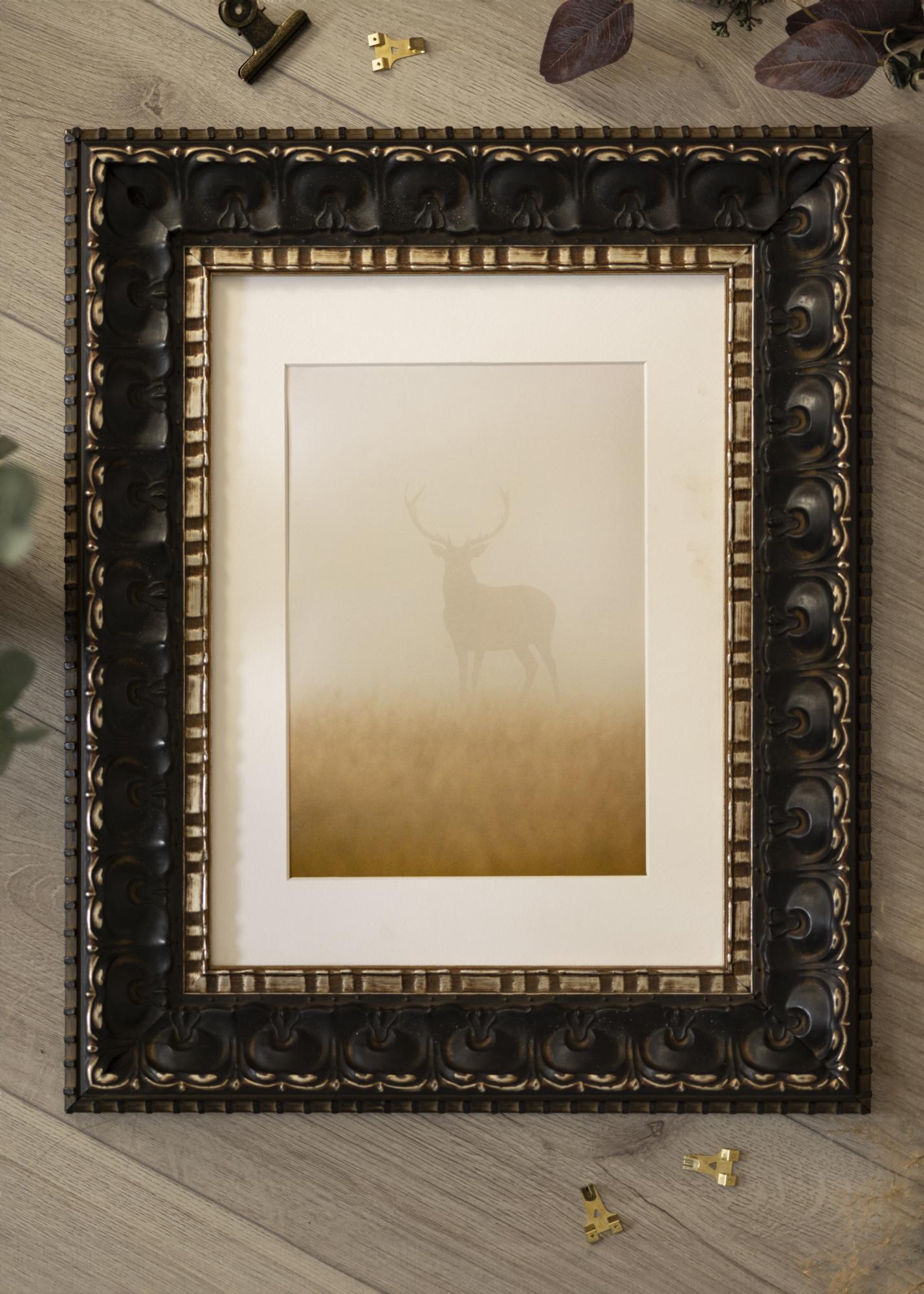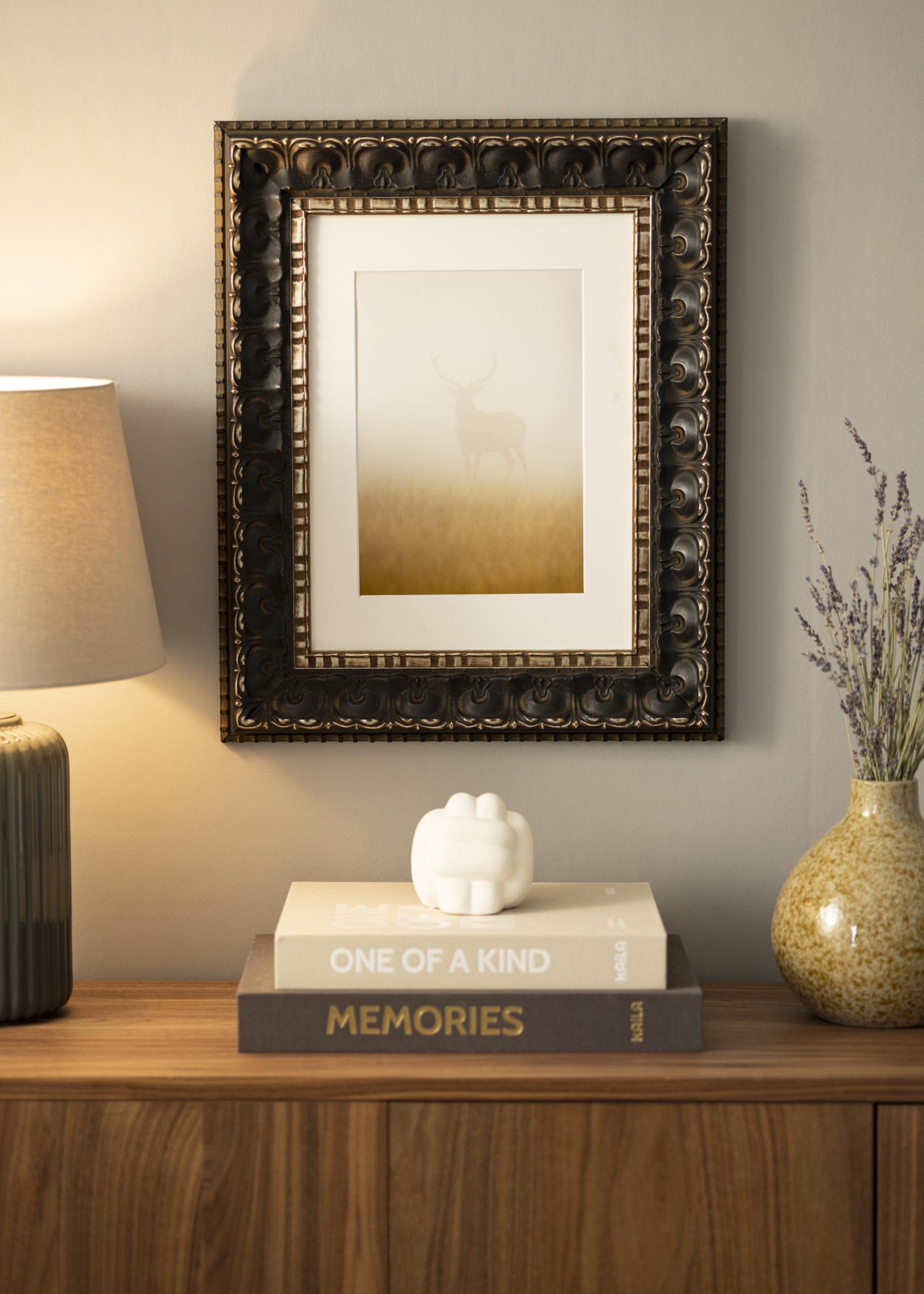A Skokloster Fekete keret tökéletes megoldás azoknak, akik elegáns és klasszikus keretet keresnek képeikhez vagy műalkotásaikhoz. Mély fekete alappal és antik arany részletekkel ez a képkeret kifinomult és luxus érzetet kölcsönöz, amely minden otthonban megállja a helyét. A szélek mentén húzódó részletes mintázatok fokozzák időtlen designját, és antik varázslatot kölcsönöznek neki.