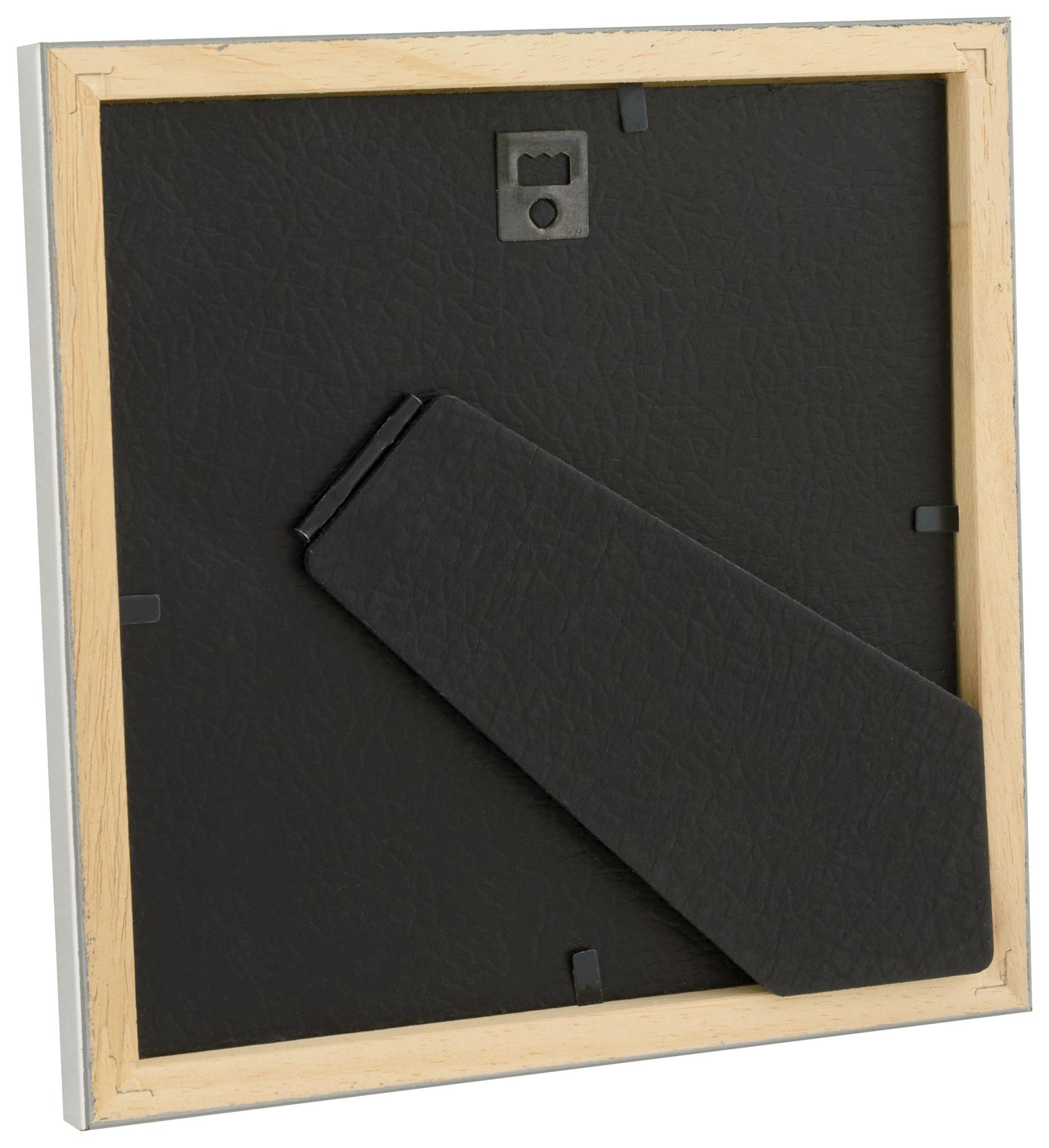 Helyezze fényképét, festményét vagy poszterét ebbe a stílusos keretbe! A keret ezüstre festett fából készült és antireflex üveggel rendelkezik. A hátlap és a tartóláb fekete bőrutánzattal vannak bevonva, ami extra luxusérzetet ad.