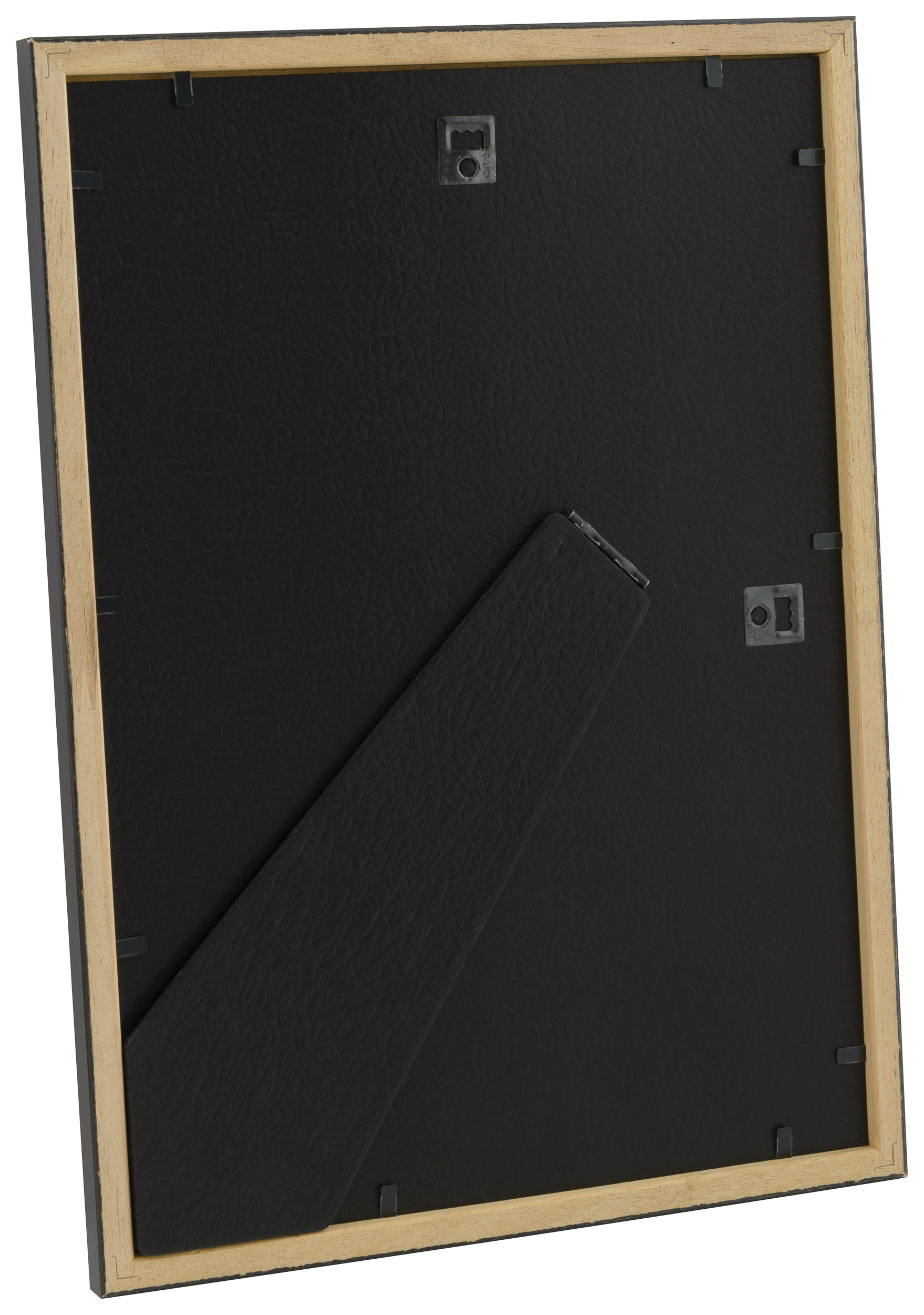 Helyezd el a fotódat, festményedet vagy poszteredet ebbe a stílusos keretbe! A keret fekete festett fából készült és antireflex üveggel van ellátva. A hátlap és a támasz fekete bőrhatású borítással rendelkezik, amely extra luxus érzetet nyújt.
