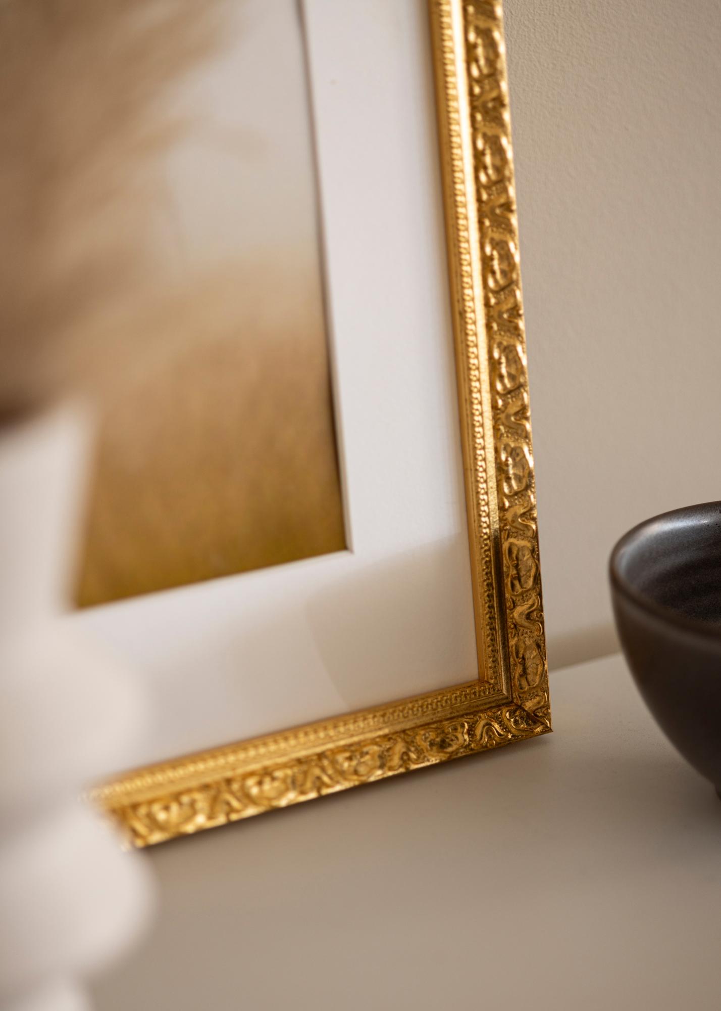 Elegáns retro ihletésű aranykeret magas minőségben, exkluzív dizájnnal, amelyet Olaszországban gyártottak. Extra emelést ad a legszebb képeidnek, különösen egy passepartout kíséretében (nem tartozék)