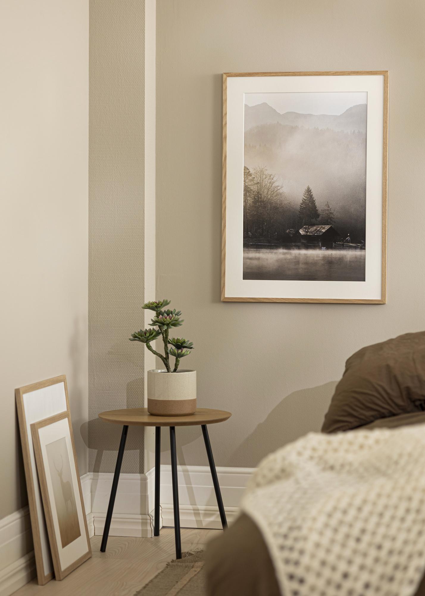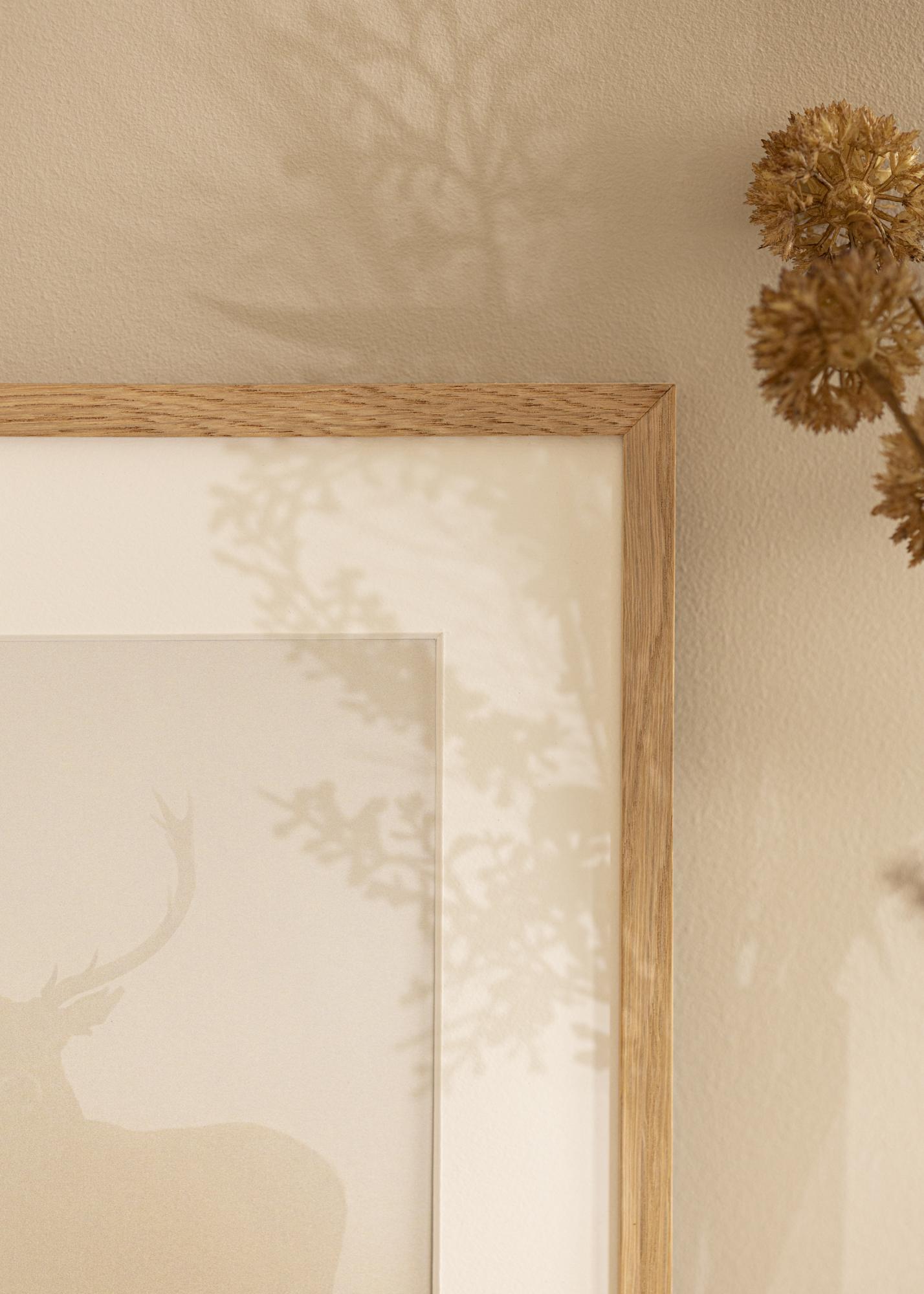 A Soul Tölgy egy masszív tölgyfából készült képkeret, letisztult és szögletes profillal, 13,5 mm-es keret szélességgel. A teljes 22 mm-es keretmélység miatt a keret kissé kiemelkedik a faltól, és izgalmas 3D-effektust hoz létre. Ez a mélység – a masszív tölgyfával kombinálva – azt is biztosítja, hogy a keret robusztus és megbízható legyen. Ez egy olyan keret, amely minimalista és egyenes kialakításában modern megjelenésű, ugyanakkor egy valódi fa keret időtlen, és mind a trendi, mind a klasszikus otthonokhoz illik.