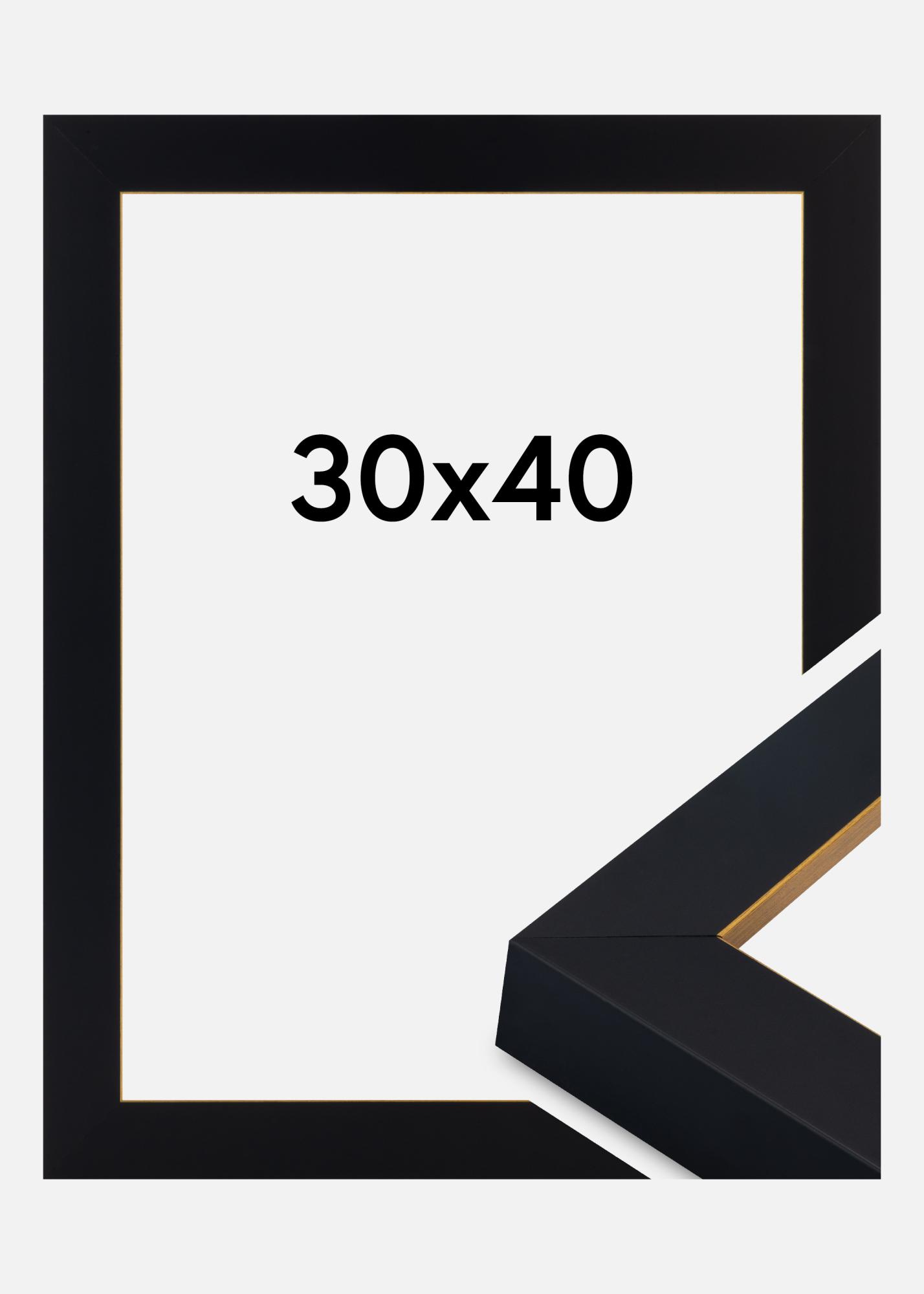 Ez az elegáns fotorámé tökéletes választás, ha szeretnéd kiemelni kedvenc motívumaidat 30x40 cm méretben. Modern és letisztult kialakítása ötvözi a sima, fényes Fekete felületet az elegáns Arany színű peremmel. A keskeny profil letisztult, grafikus megjelenést kölcsönöz, így a motívum kerül a középpontba – ezért kiváló választás fényképekhez és poszterekhez egyaránt.