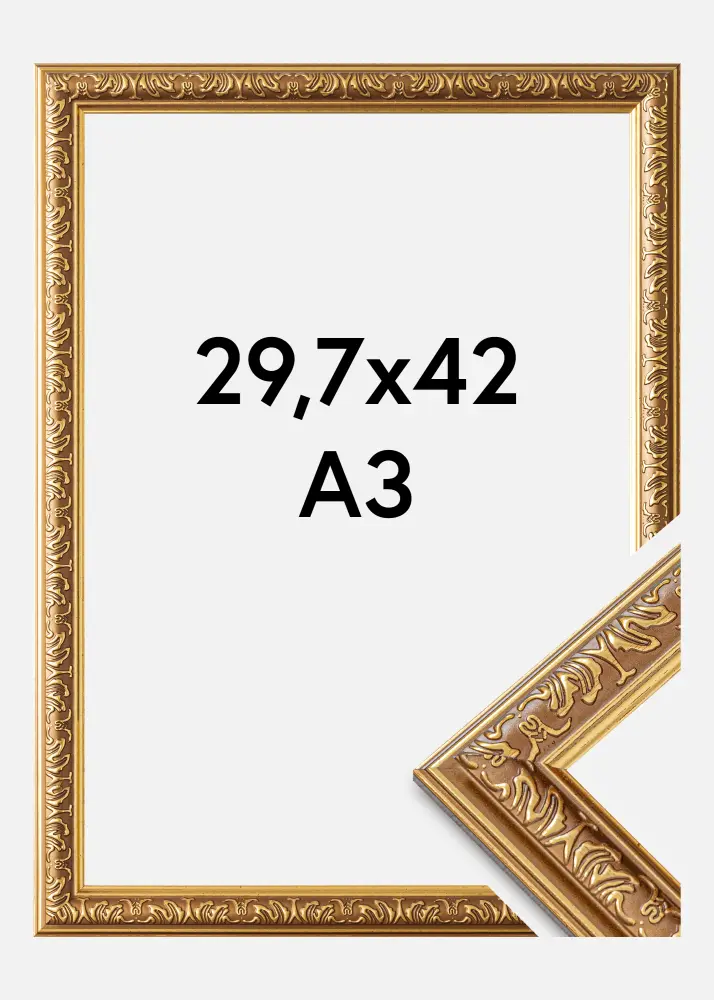 Az arany színű, 28 mm széles keretléc dekoratív, díszített részletekkel rendelkezik, amelyek hagyományos és időtlen érzést kölcsönöznek. A belső szélén húzódó, bonyolult minták felerősítik a kifinomult megjelenést, ami ideálissá teszi a klasszikus és elegáns berendezési stílusokhoz. A 20 mm mély keret stabil és robusztus keretet ad a képeidnek.