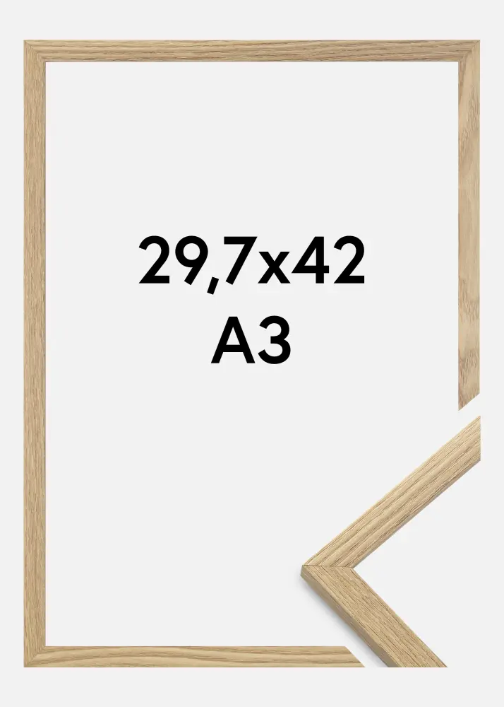 A keret MDF-anyagból készült, fóliázott tölgy színű felülettel, és 14 mm vékony keretprofillal rendelkezik. Bőven van hely, hogy kiegészítsd képeid egy luxus paszpartuval, hála a keret belső mélységének (keretmélység) ami 12 mm.