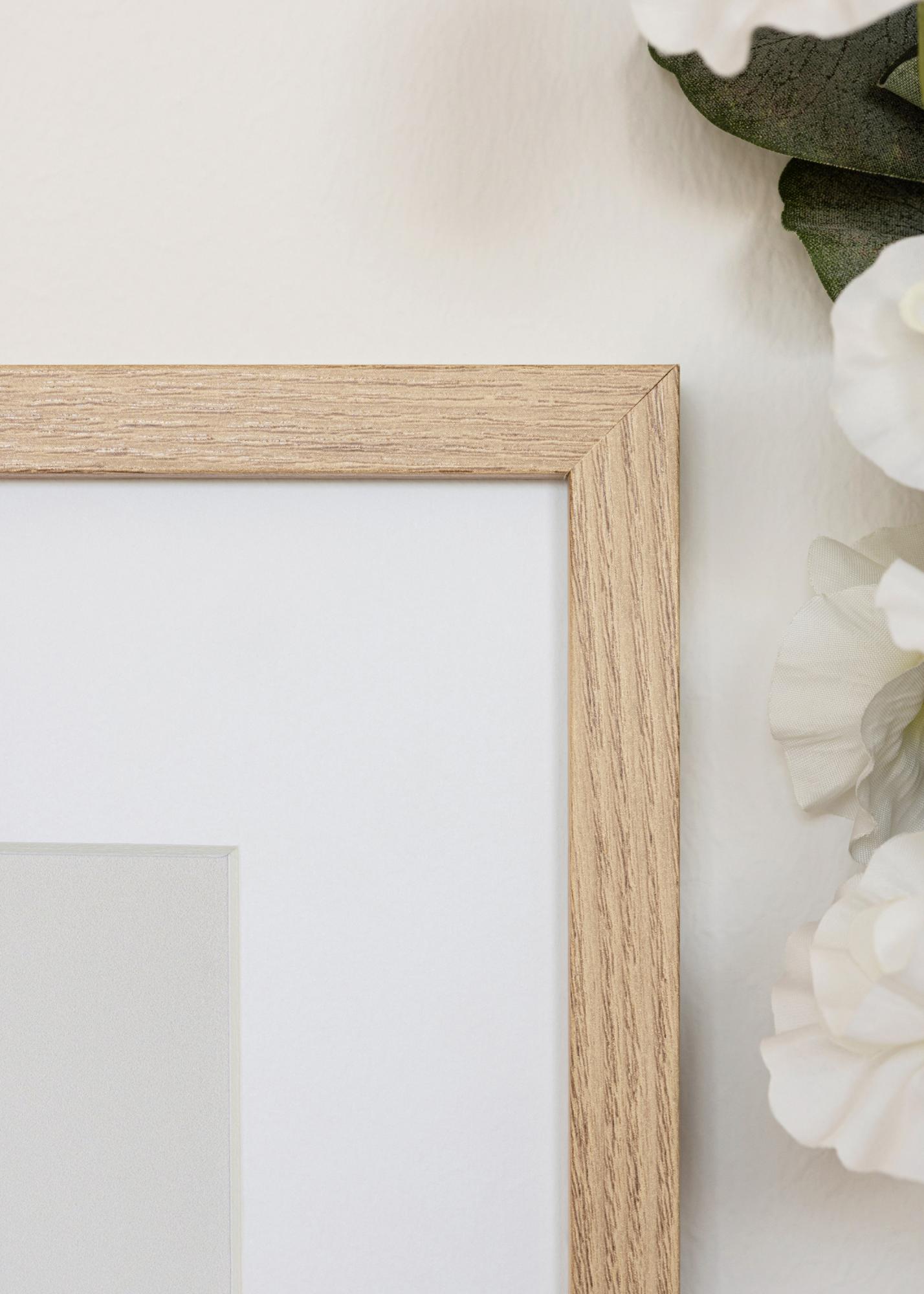 Ez a képkeret MDF-anyagból készült, stílusos tölgyfa színű felülettel és valódi üveggel. A mindössze 14 mm vékony keretszegély elegáns benyomást kelt. A hátlapot hajlítható tüskék tartják helyén, így könnyen eltávolítható, amikor be akarod szerelni a képeidet.