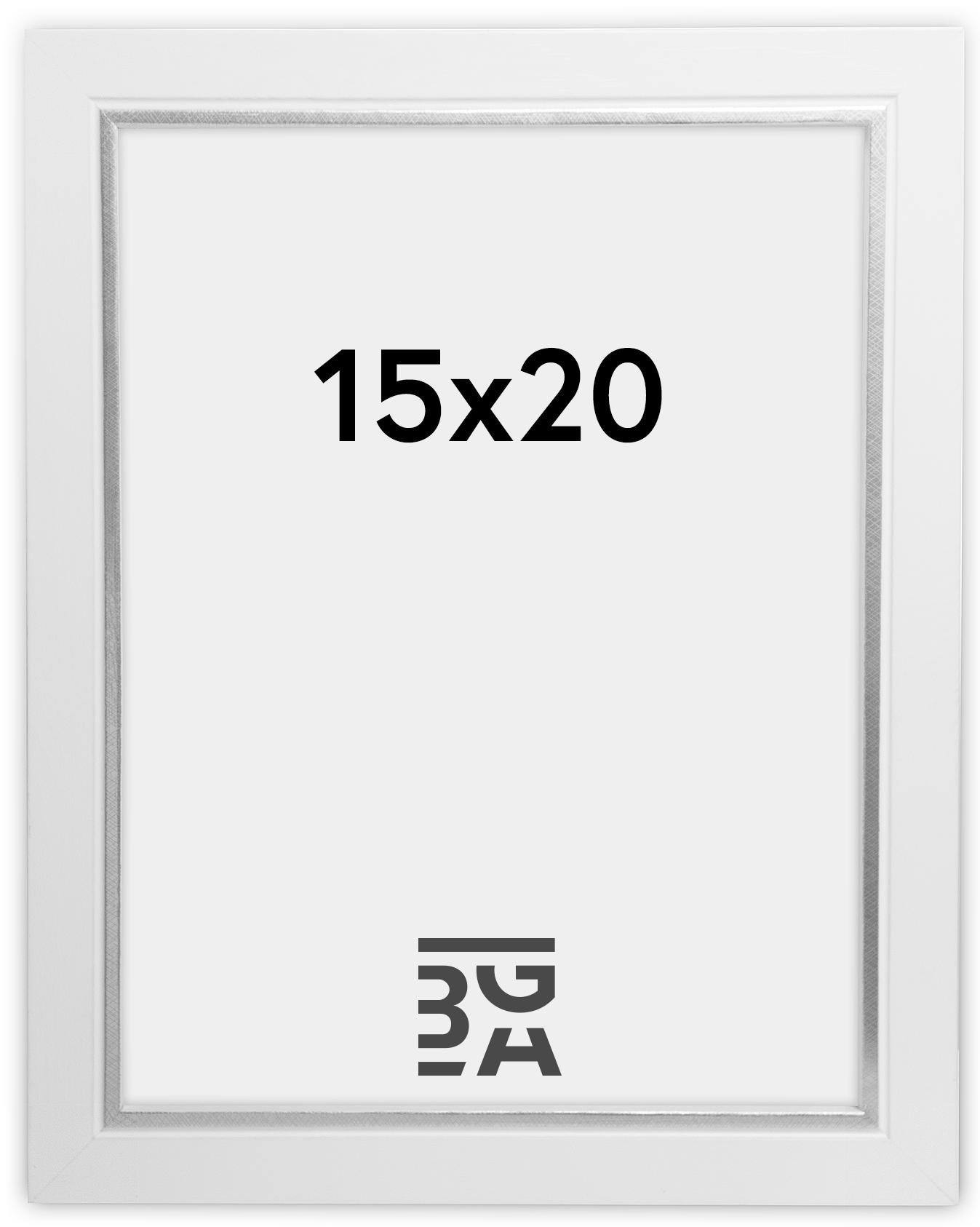 Elegáns fehér fa képkeret egy kis extra "csavarral" azáltal, hogy egy szép ezüstszínű szél van közvetlenül a motívum mellett. Tökéletes keret portréképekhez. Tökéletes elhelyezni egy képtartón egy szép kollázs számára.