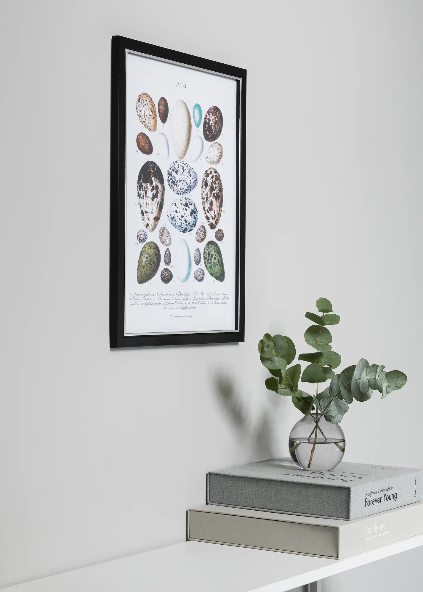 Exkluzív fekete fa képkeret egy kis extra "Csavar" díszítéssel, finom ezüstszínű széllel a motívum mellett. Kiváló választás, ha olyan keretet keres, amely extra dimenziót ad a motívumnak. Tökéletes elhelyezni egy képállványon egy szép kollázsért.