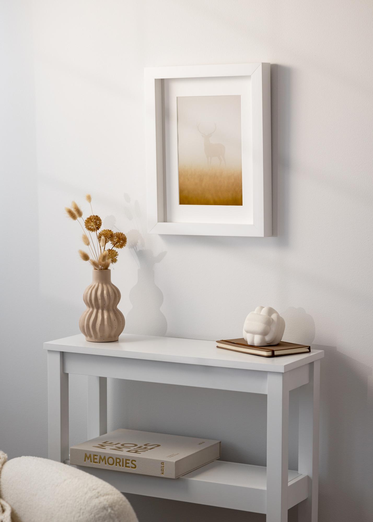 A Ram Tyr Vit egy elegáns és letisztult fényképkeret, amely tökéletesen alkalmas kedvenc képeid és műalkotásaid kiemelésére. Fehér színével friss és modern benyomást kelt, amely a legtöbb lakberendezési stílusba beolvad. Akár harmonikus falat szeretnél létrehozni képeiddel, akár egyetlen képet akarsz a megérdemelt figyelemmel ellátni, ez a képkeret kiváló választás.