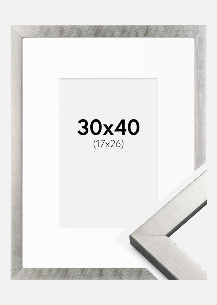 Keret Uppsala Ezüst 30x40 cm - Paszpartu Fehér 18x27 cm