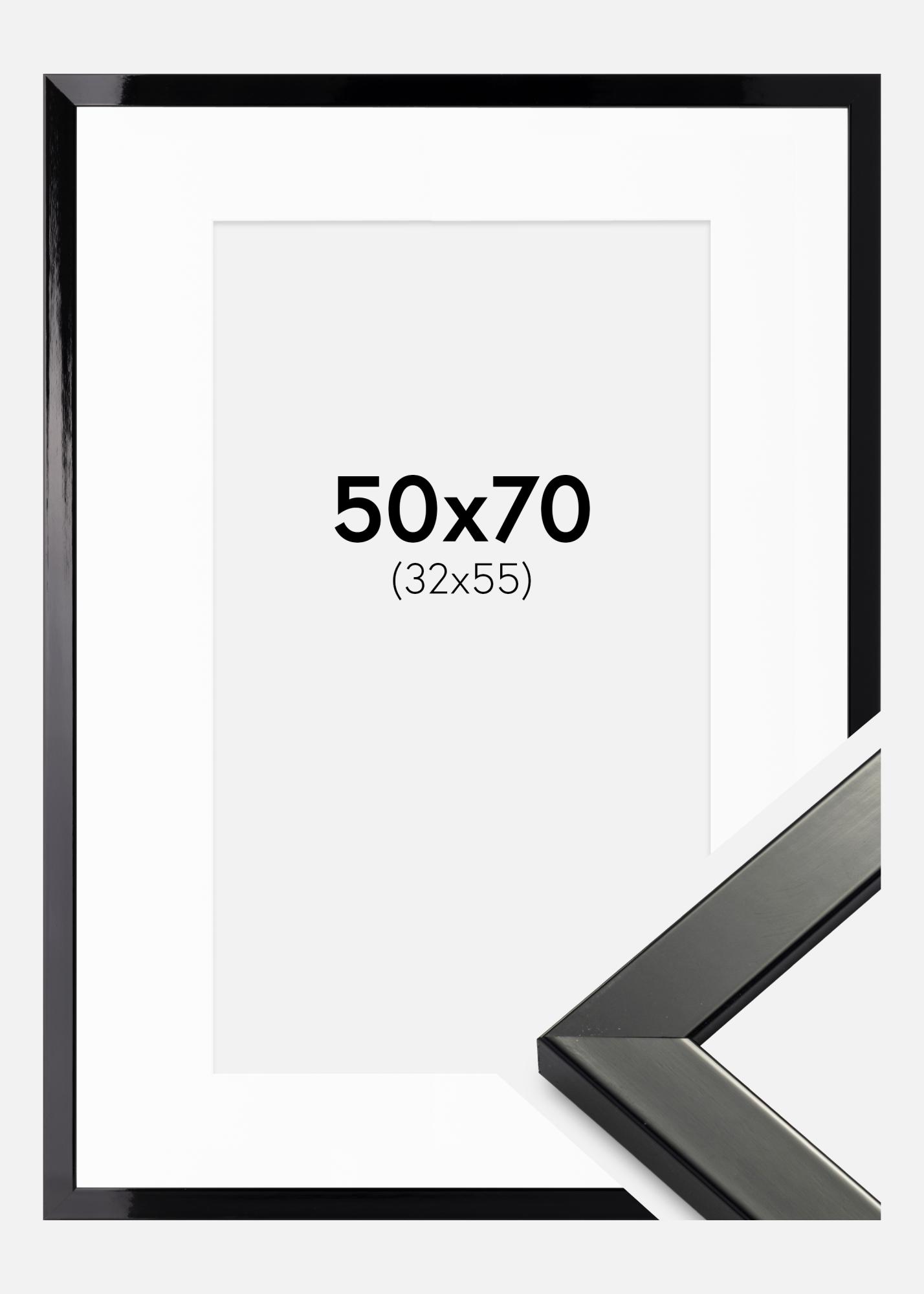 Keret Uppsala Nagyon fényes Fekete 50x70 cm - Paszpartu Fehér 33x56 cm