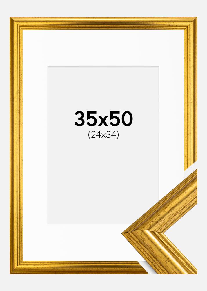 Alakítsa át kedvenc fényképét vagy műalkotását elegáns fali dekorációvá a fehér paszpartus exkluzív aranykeretünkkel. Ez a kifinomult keret tökéletesen kiemeli és védi a 25x35 cm-es képet. A 31 mm szélességű és 17 mm mélységű keret jellegzetes és luxus érzetet kölcsönöz a kiválasztott motívumnak.