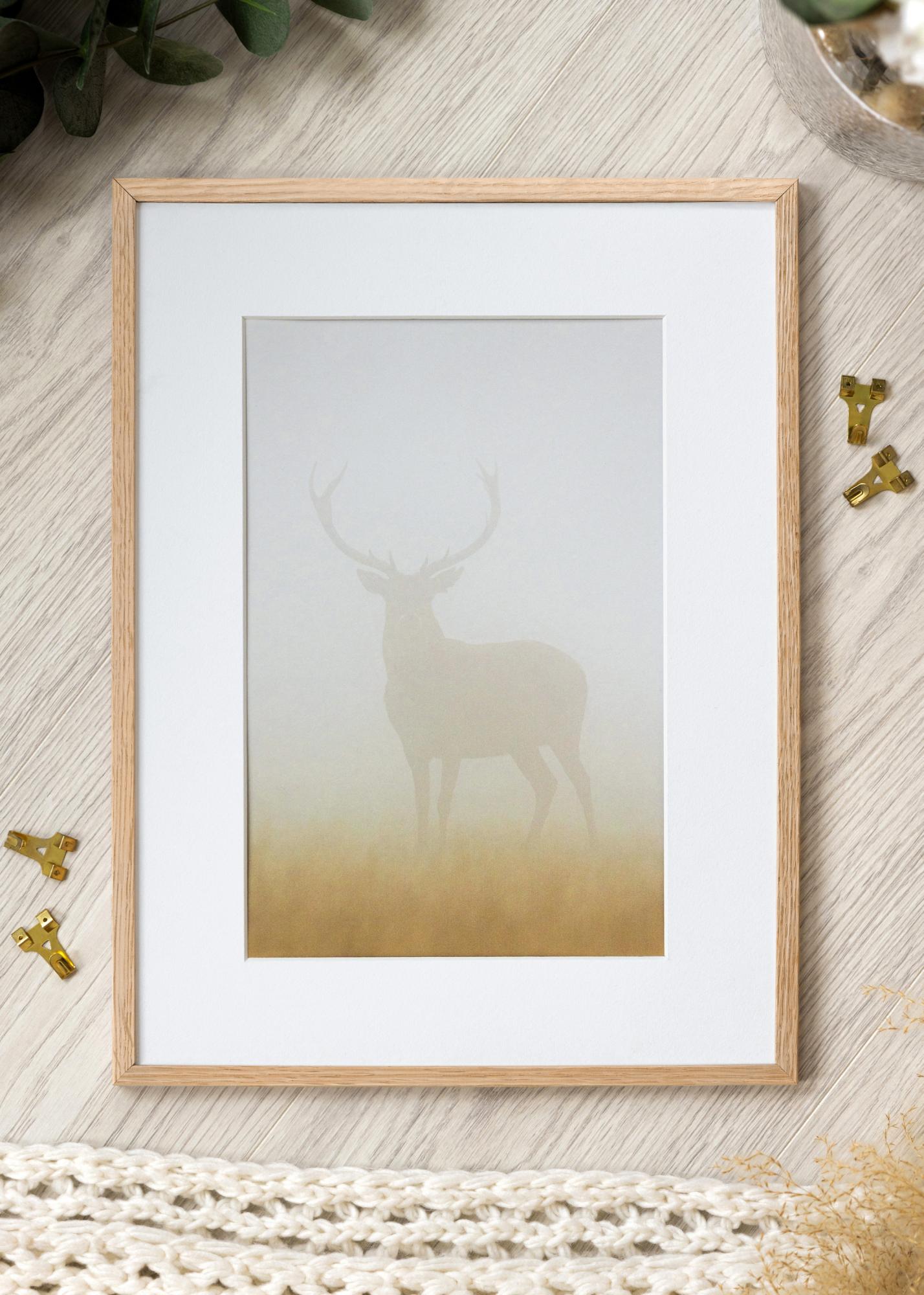 A keret tölgyfából készült, és természetes árnyalatú, kezeletlen felületű. Akril üveggel van ellátva, amelynek előnyei, hogy könnyű és törésmentes – miközben ugyanolyan tiszta, éles képet ad, mint a hagyományos üveg!