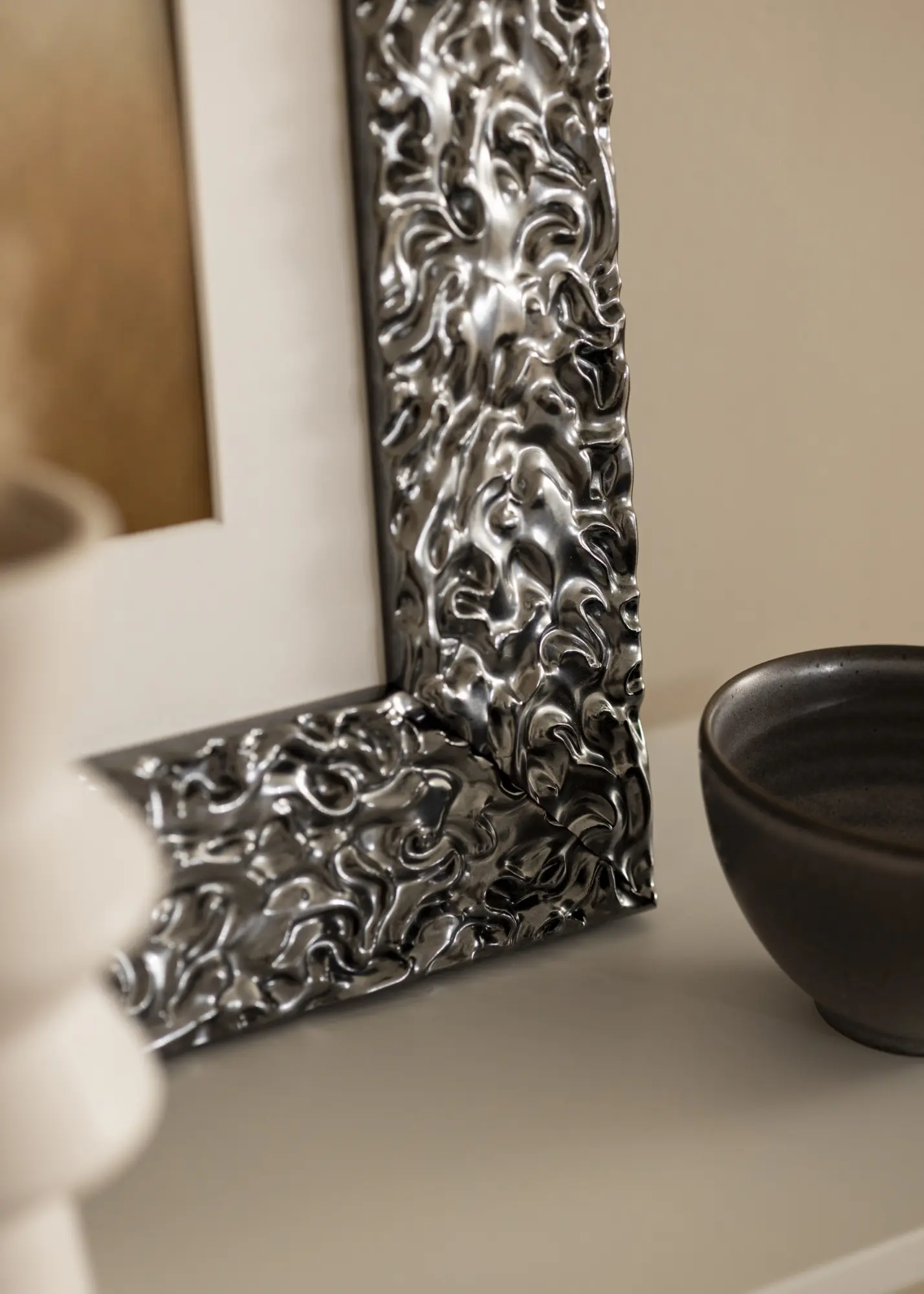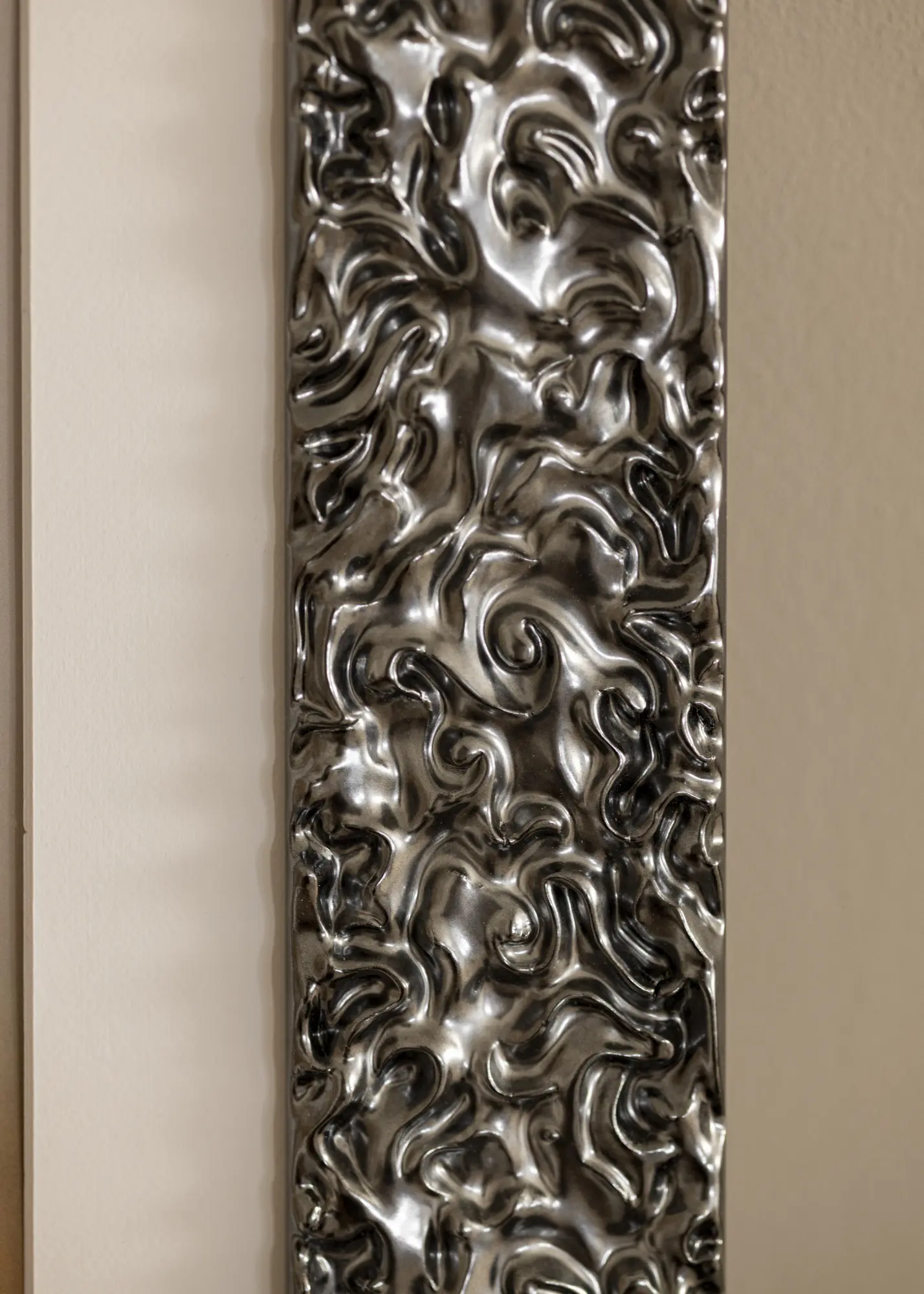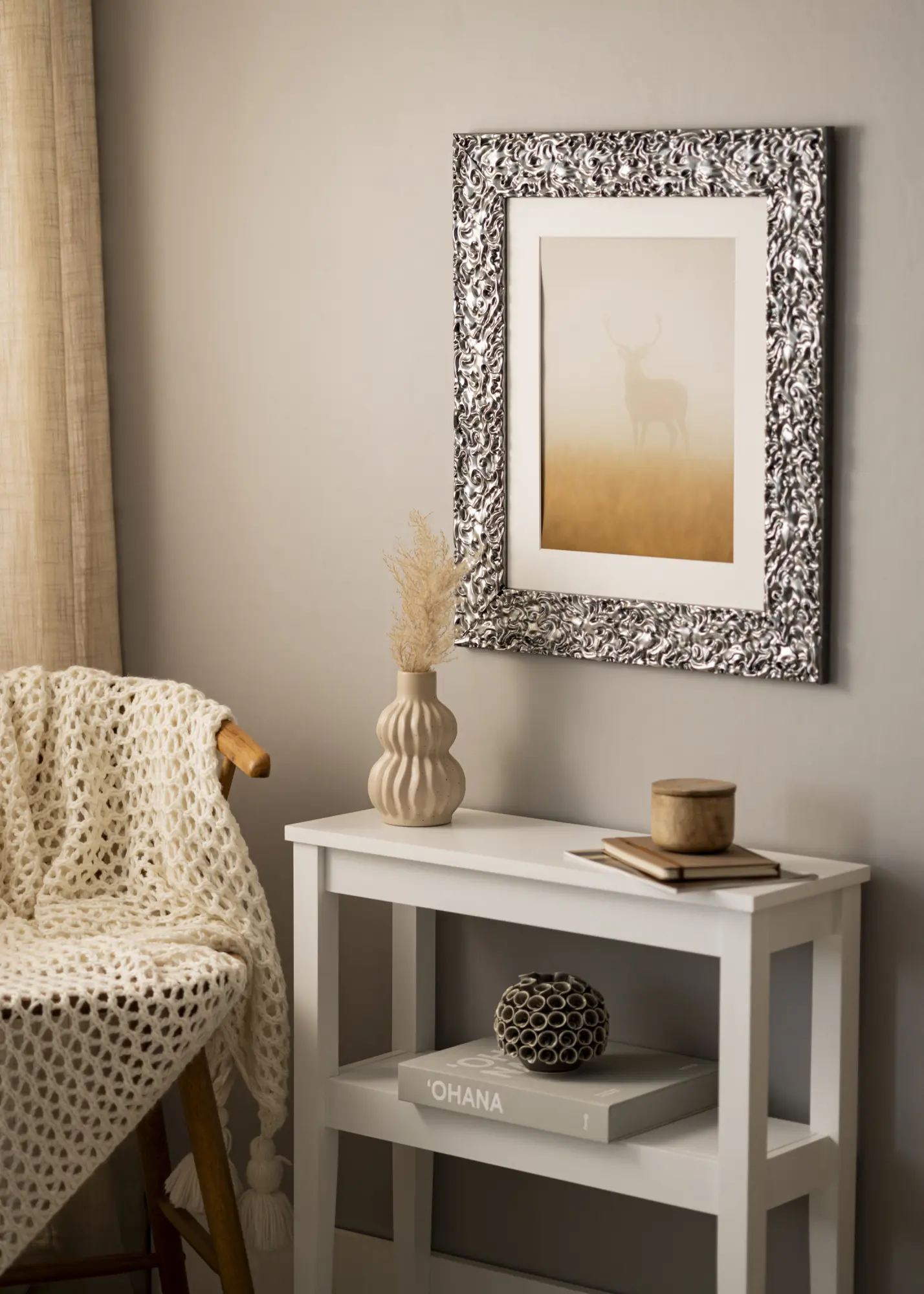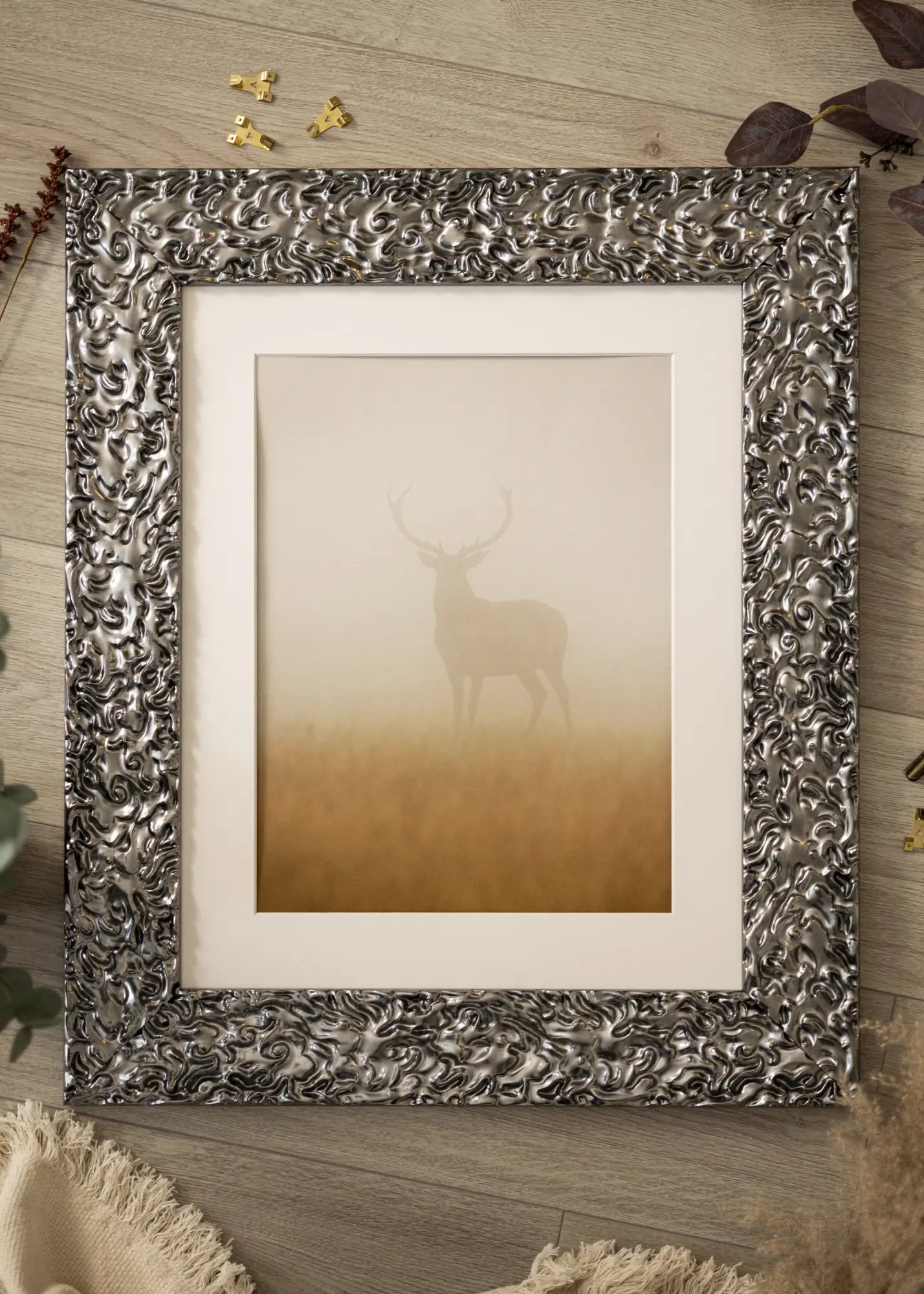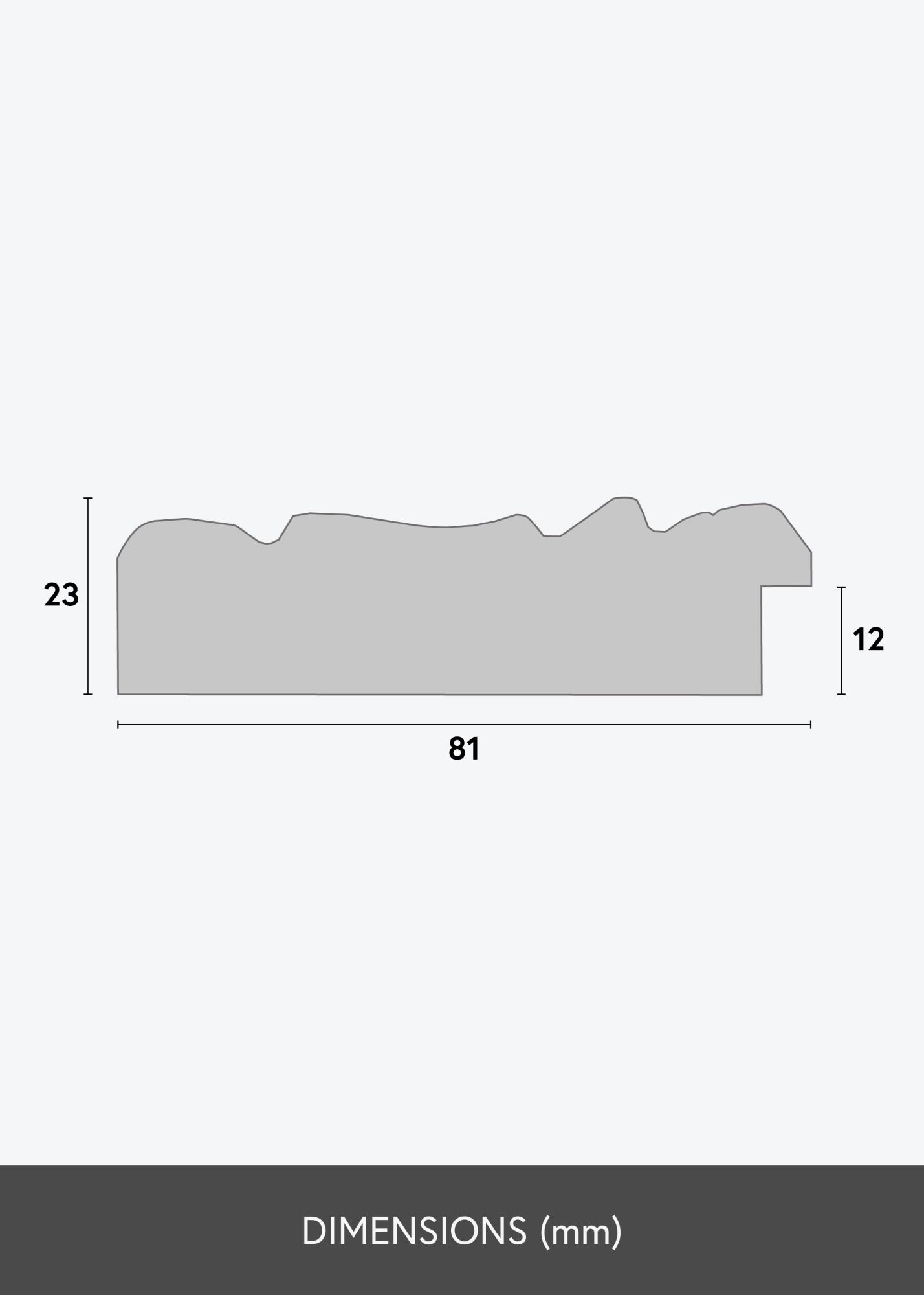 Ez a képkeret egy 81 mm széles keretlécet és 23 mm mélységet kínál, amely robusztus és lenyűgöző jelenlétet biztosít a falon. Fenyőből készült, ez a tartósságot kombinálja az esztétikával, így kiváló választás mind modern, mind klasszikus enteriőrök számára. Az ezüst szín luxus érzetet kelt, és könnyen illeszthető otthona különböző színtémáihoz.