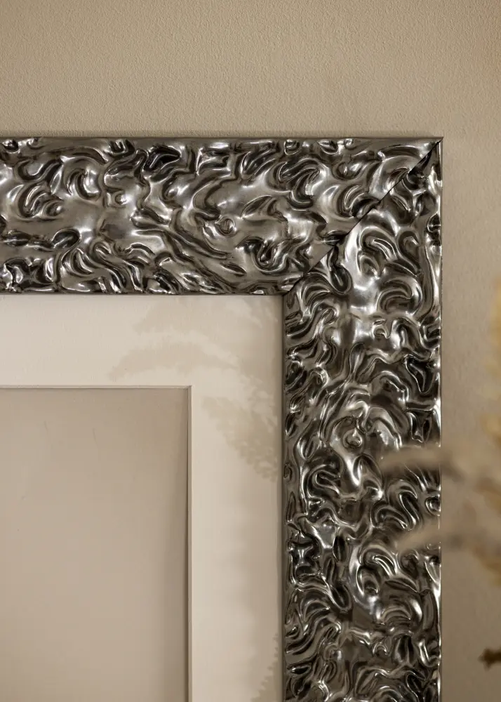 A Westminster Krom keret egy méretre szabott képkeret, amelyet saját keretező műhelyünkben készítünk, így lehetőséget biztosítunk Önnek, hogy egy olyan fényképkeretet kapjon, amely tökéletesen illeszkedik az adott motívumhoz. Merész és elegáns kialakításával, magasfényű ezüst bevonatával ez a keret stílusos eleme lesz otthonának. A visszaverődő felület és a részletgazdag minta élénk struktúrát hoz létre, amely exkluzív módon emeli ki a motívumot.