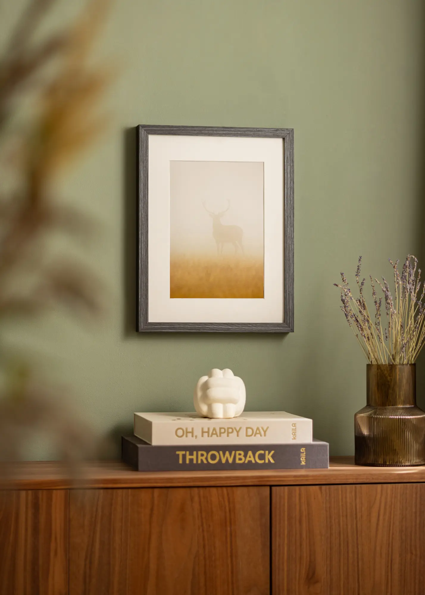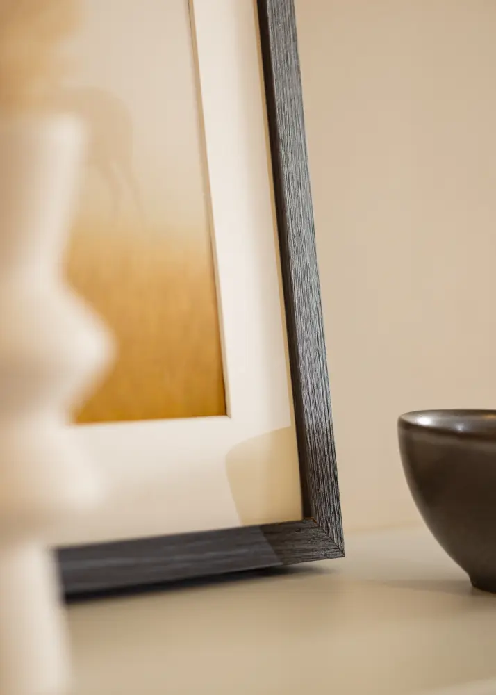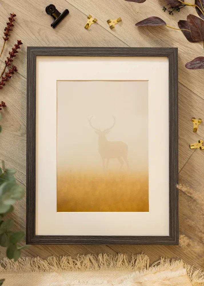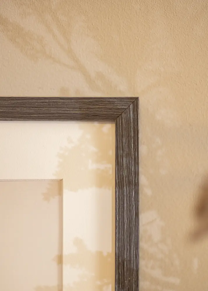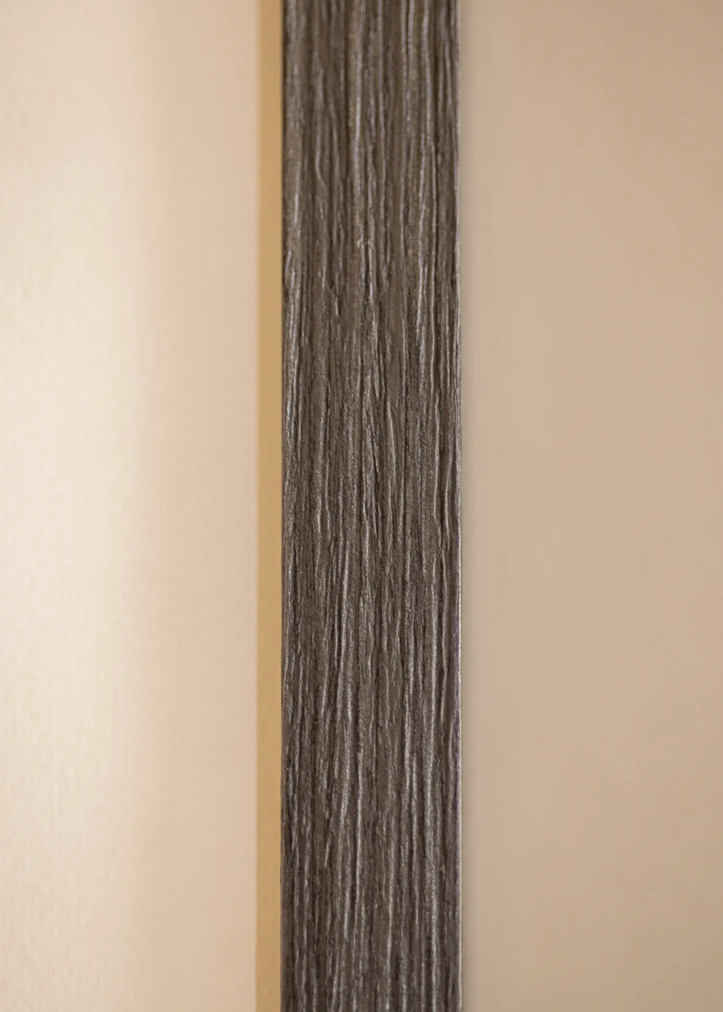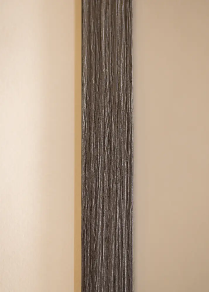 A Wood Selection Grey I egy méretre szabott képkeret, amely tökéletesen ötvözi a stílust és a funkcionalitást. Szürke színével és sötét színű fa felületével kifinomult érintést ad a képeidnek és műalkotásaidnak. A fa természetes erezete végigfut a széleken, vizuális dinamikát teremtve, amely megragadja a szemet.