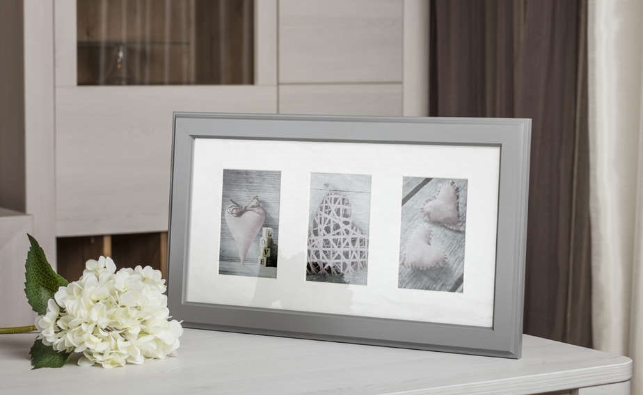 Szürke, csodás szín! Vagy hogy is mondják? Bármelyik is igaz, ez egy igazán elegáns szín, amelyet könnyű párosítani, különösen pasztell színekkel. Keretezd be legszebb fotóidat ezzel a stílusos kollázs kerettel. A keret fából készült és világosszürke árnyalatúra festett. A kereten szép részletek vannak, és a fehér paszpartuval együtt luxus összhatást kelt.