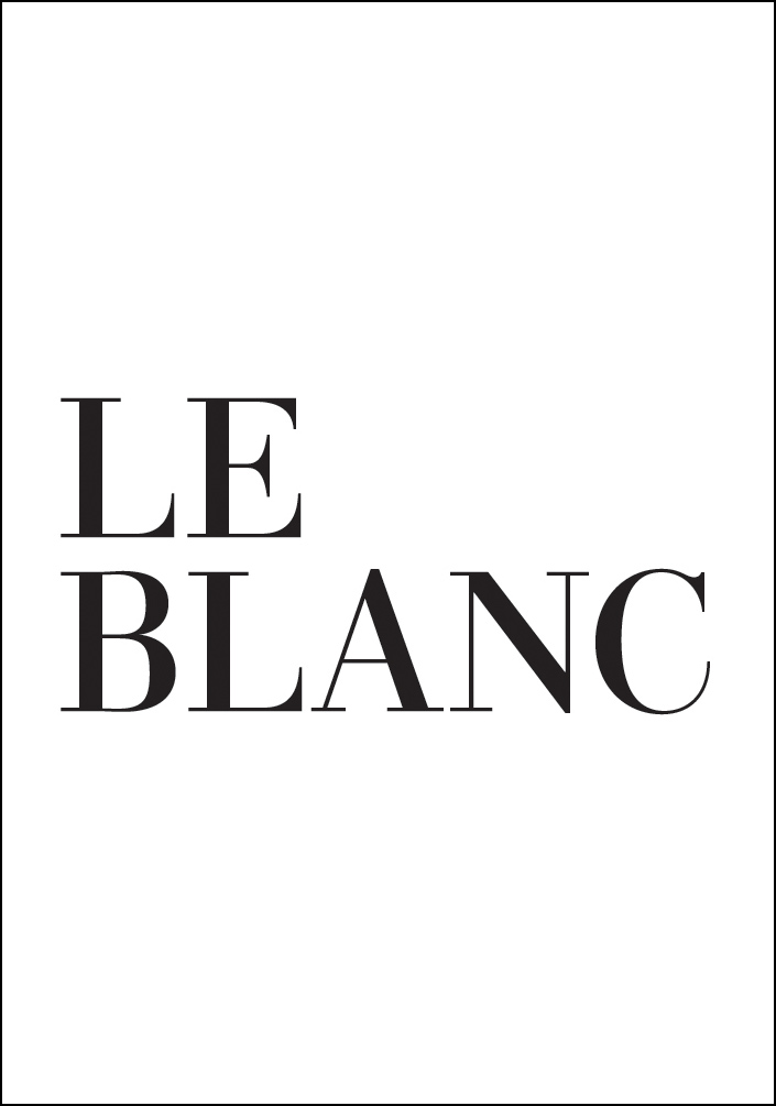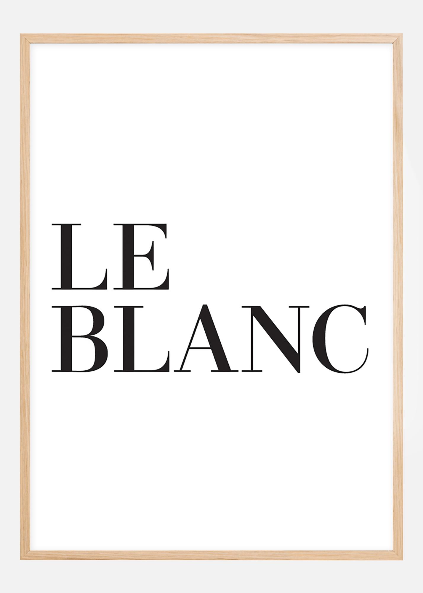 Egy egyszerű és elegáns szövegposzter a "Le blanc", Az fehér üzenetével. Egy plakát, amely tökéletesen illik a modern és minimalista otthonba, és amely tökéletes része lehet egy nagyobb kollázsnak.
