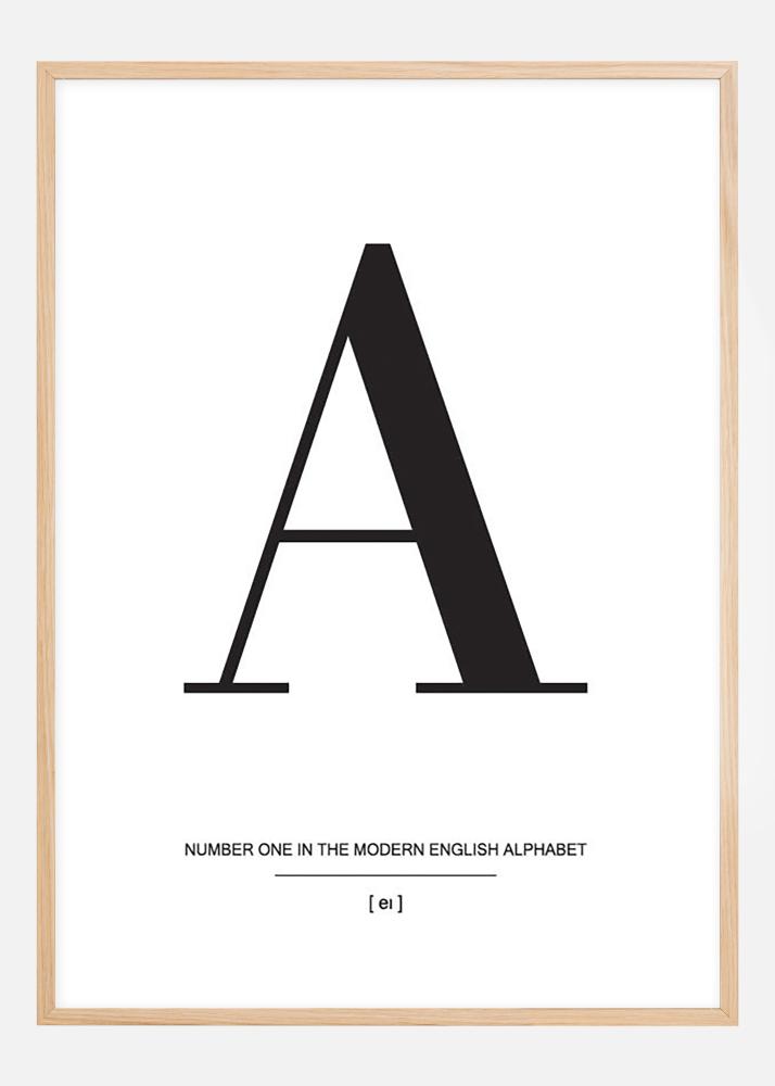 A szépség az egyszerűségben rejlik, és ezt valóban bizonyítja ez a letisztult poszter az A betűvel fekete színben fehér háttér előtt. A plakát vonzó tipográfiát mutat és érdemes kiegészíteni ugyanebből a sorozatból származó más betűposzterekkel, hogy trendi és szép képfalat hozzunk létre. Válassza ki kedvenc betűs posztereit, és válasszon széles választékunkban található minőségi kereteink közül, majd hagyja, hogy a képzelet otthon a falakon szárnyaljon.