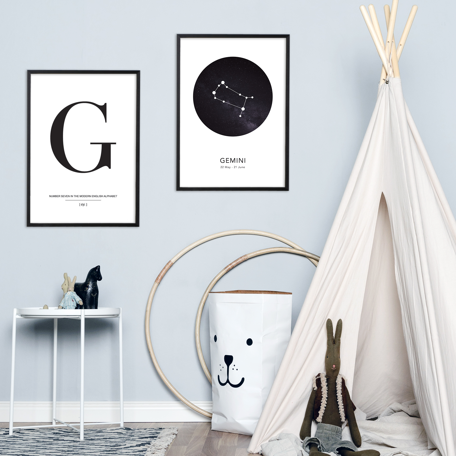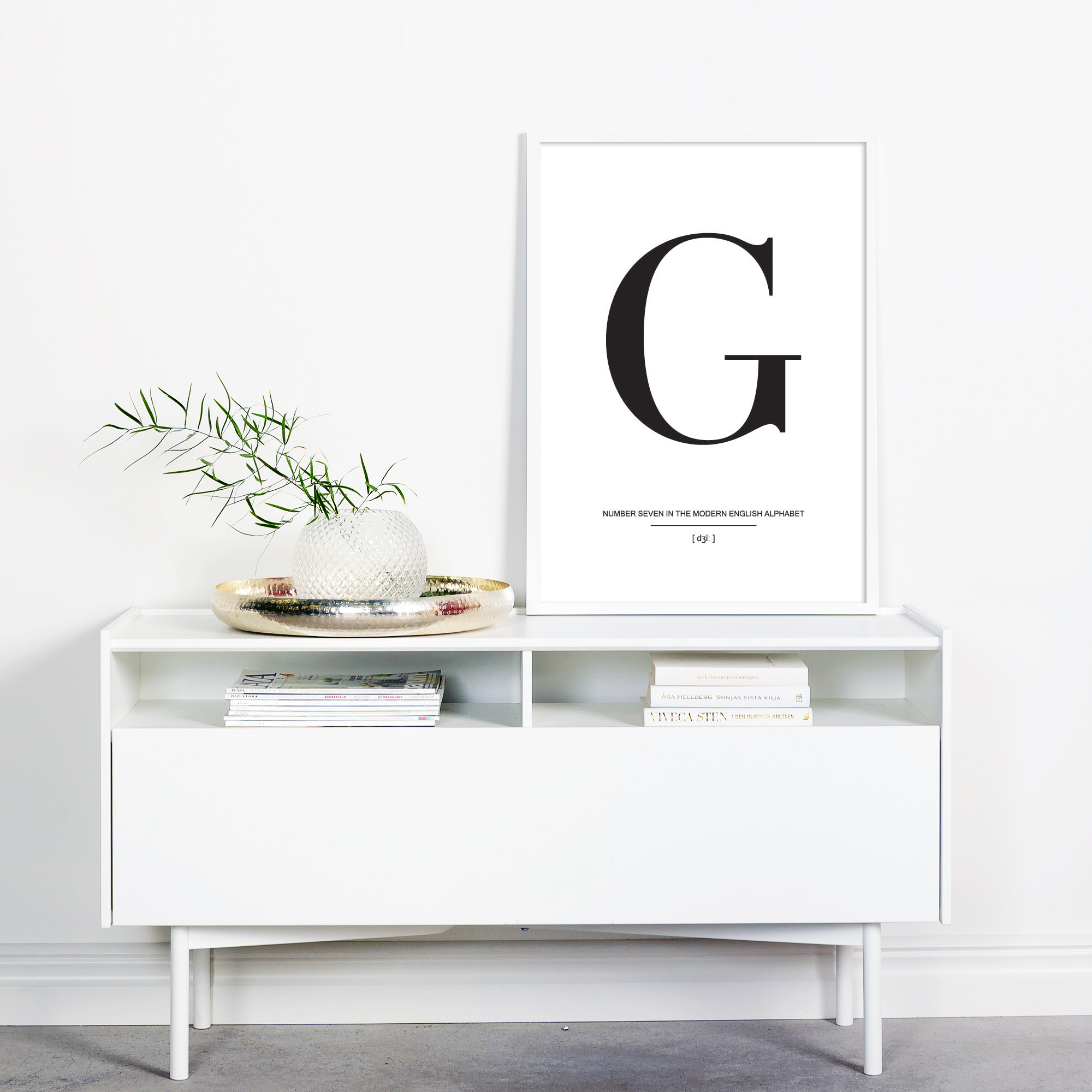 A szépség az egyszerűségben rejlik, és ezt valóban bizonyítja ez a stílusos poszter, amelyen a G betű fekete színben látható fehér háttér előtt. A plakáton elegáns tipográfia található, és érdemes kiegészíteni a sorozat többi betűs poszterével egy trendi és szép kép fal létrehozásához. Válassza ki kedvenc betűs posztereit, és válasszon minőségi kereteink széles választékából, majd hagyja, hogy a képzelet otthon a falakon szárnyaljon.