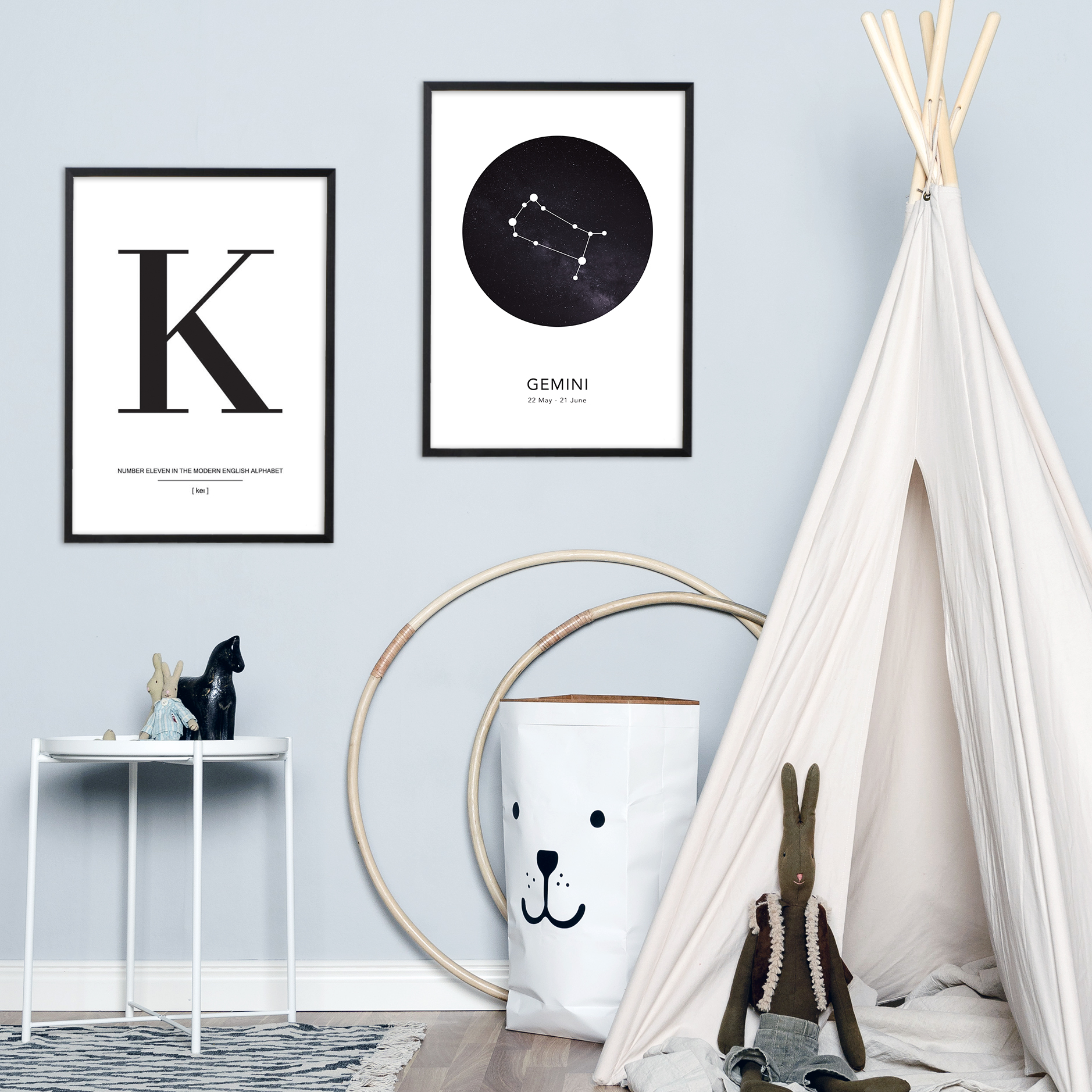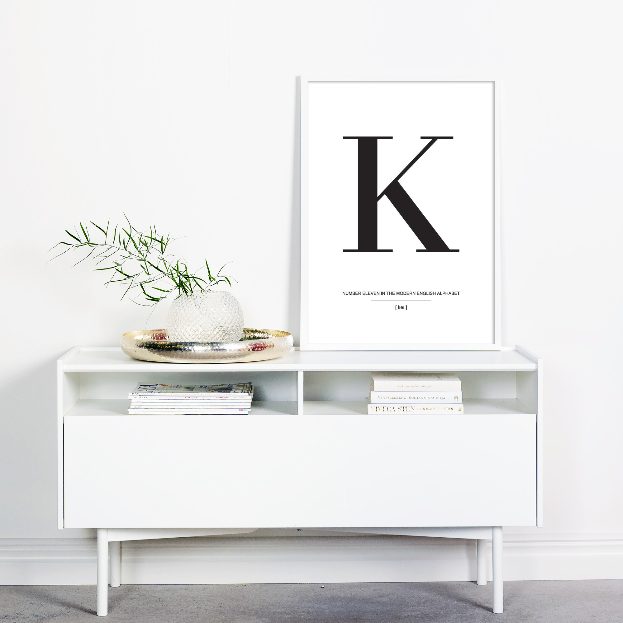 Az egyszerűségben rejlik a szépség, és ezt valóban bizonyítja ez a stílusos poszter a K betűvel feketével fehér háttér előtt. A plakát szép tipográfiával rendelkezik, és ki kell egészíteni más betűposzterekkel ugyanabból a sorozatból, hogy divatos és szép képfalat hozzon létre. Válaszd ki kedvenc betűs posztereidet, és válassz nagy választékunk minőségi keretei közül, majd engedd szabadon a fantáziádat otthon a falakon.
