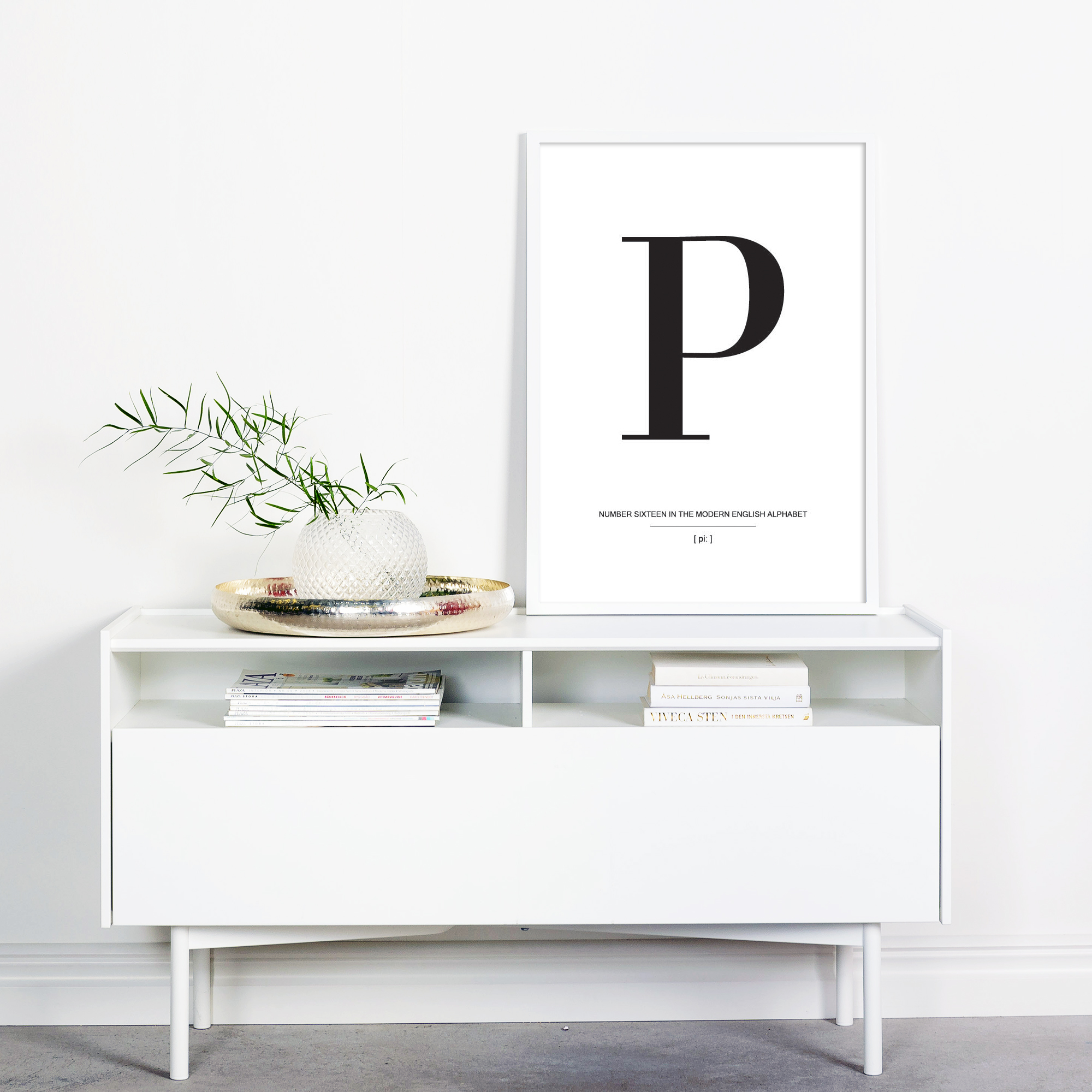 Az egyszerűségben található szépség, és ezt valóban bizonyítja ez a stílusos poszter a P betűvel fekete színben fehér háttér előtt. A plakát szép tipográfiával rendelkezik, és érdemes kiegészíteni ugyanabból a sorozatból származó más betűposzterekkel, hogy trendi és gyönyörű képfalat hozzon létre. Válaszd ki kedvenc betűs posztereidet, és válassz hatalmas minőségi keretválasztékunkból, aztán engedd szabadjára képzelőerődet otthon a falakon.