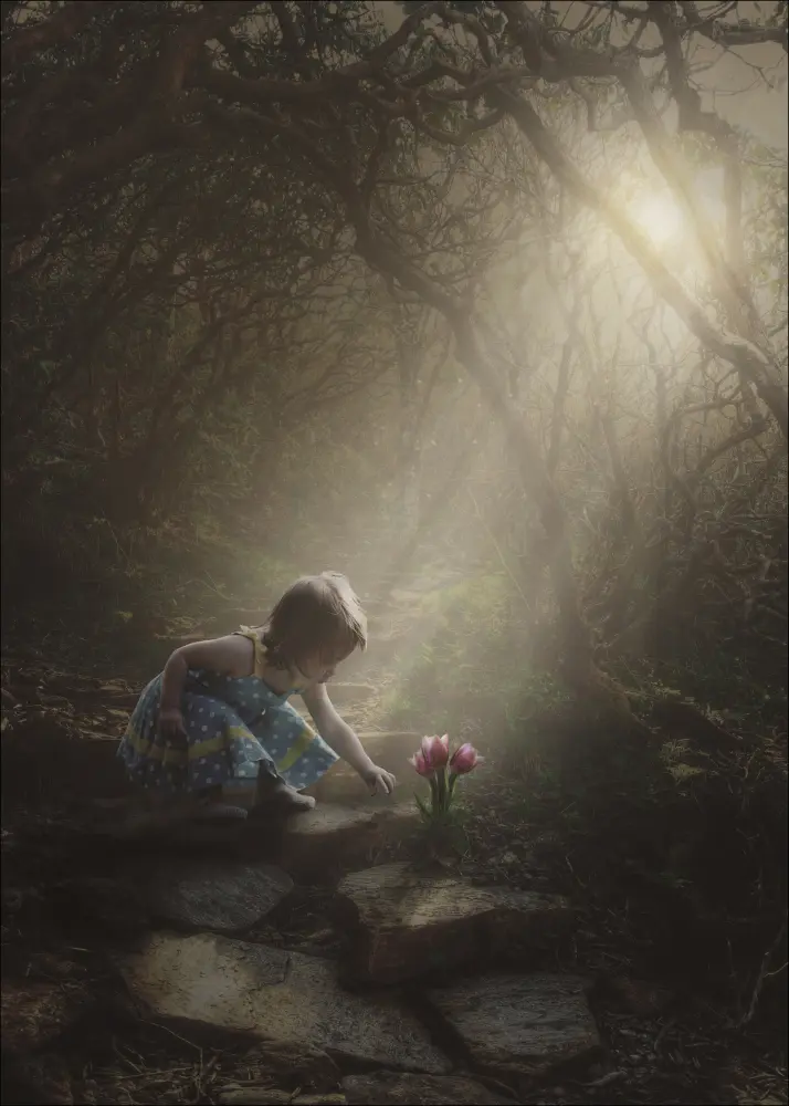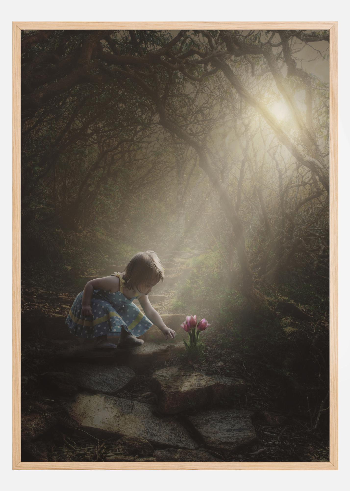 Gyönyörű grafikai művészet, amely varázslatos fényével, mesés erdejével és a felfedező kalandra induló kislánnyal varázslatos világba visz el. Egy álomszerű poszter, amely egyre jobb és jobb lesz, minél nagyobb méretű.