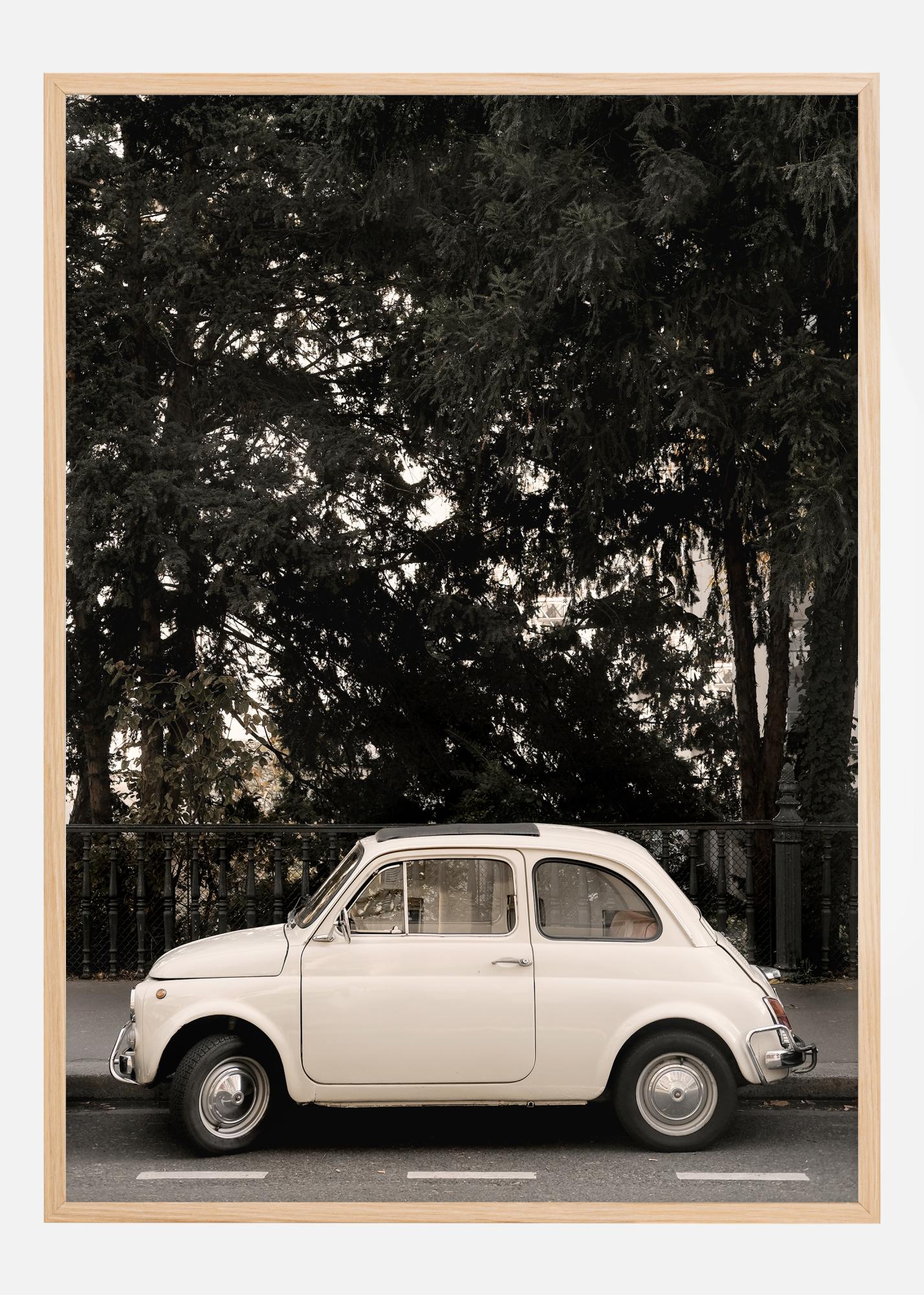 Ebben a poszterben tökéletes egyensúly tükröződik a jármű tiszta fehér felülete és a háttérben lévő fák sötétebb zöld tónusai között, amelyek együtt békés és harmonikus képet alkotnak. A szépia színű égbolt és a finom városi környezet egy extra dimenziót ad a meleg és mélység számára. Ez a poszter bármilyen helyiségnek kifinomultságot kölcsönöz, és ideális ajándék autórajongóknak, vagy azok számára, akik értékelik a klasszikus esztétikát az otthonukban.
