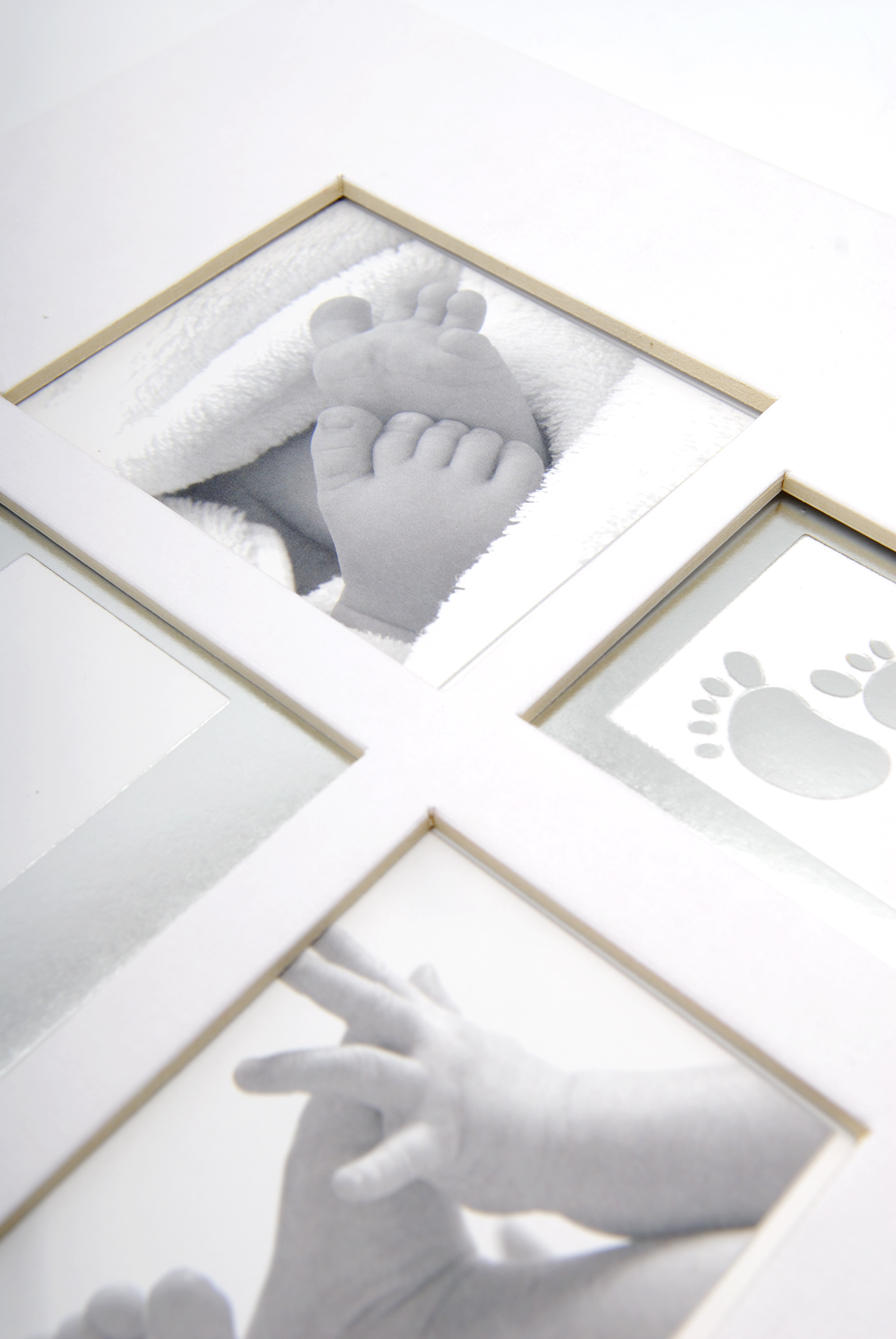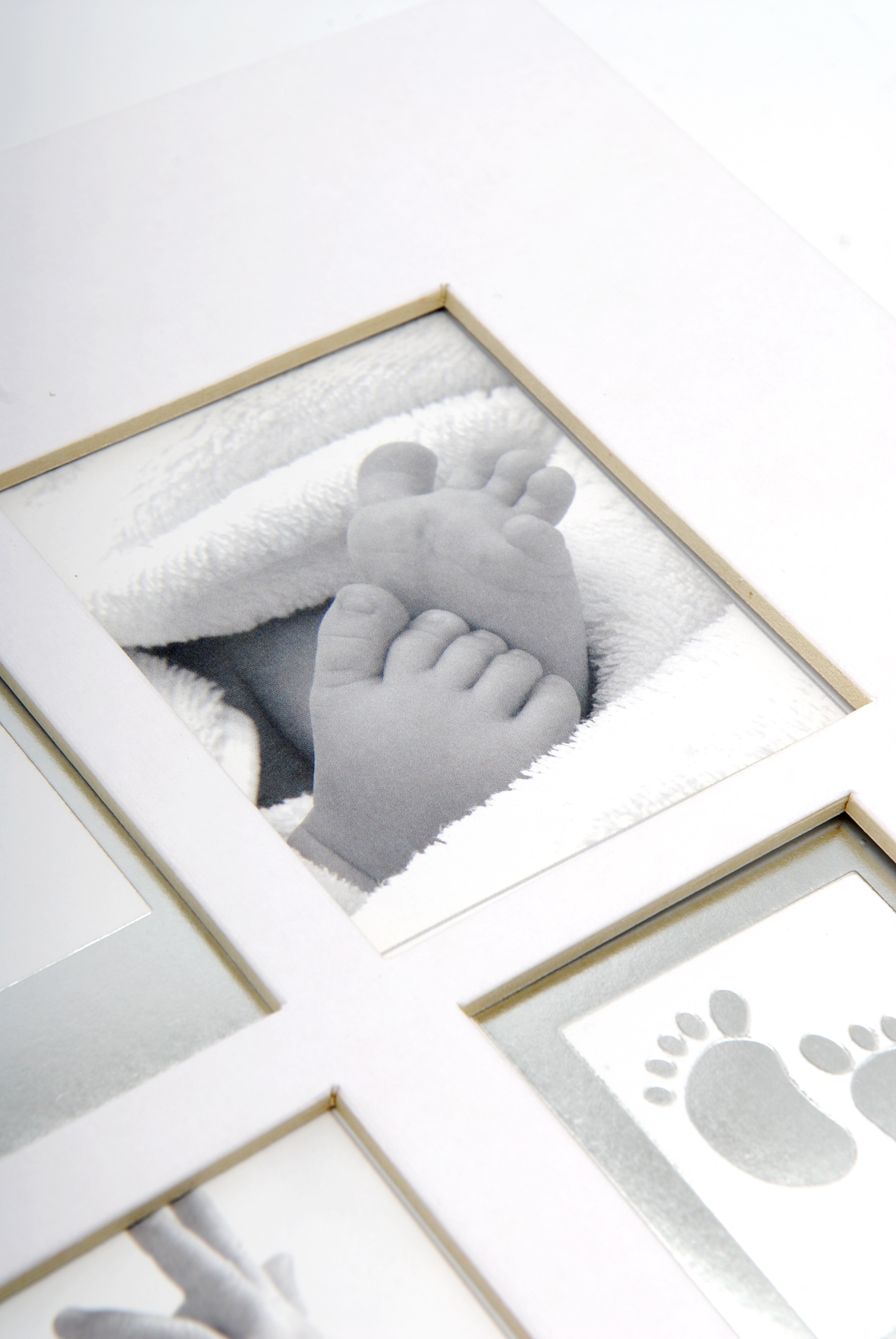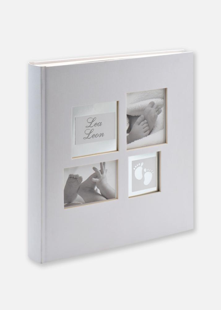 Elegáns babafotóalbum fehér, halvány szürke árnyalattal, amely az album elején 4 képnek biztosít helyet. Tökéletes, amikor személyes babafotóalbumot szeretnél készíteni kedvenc képeid számára.