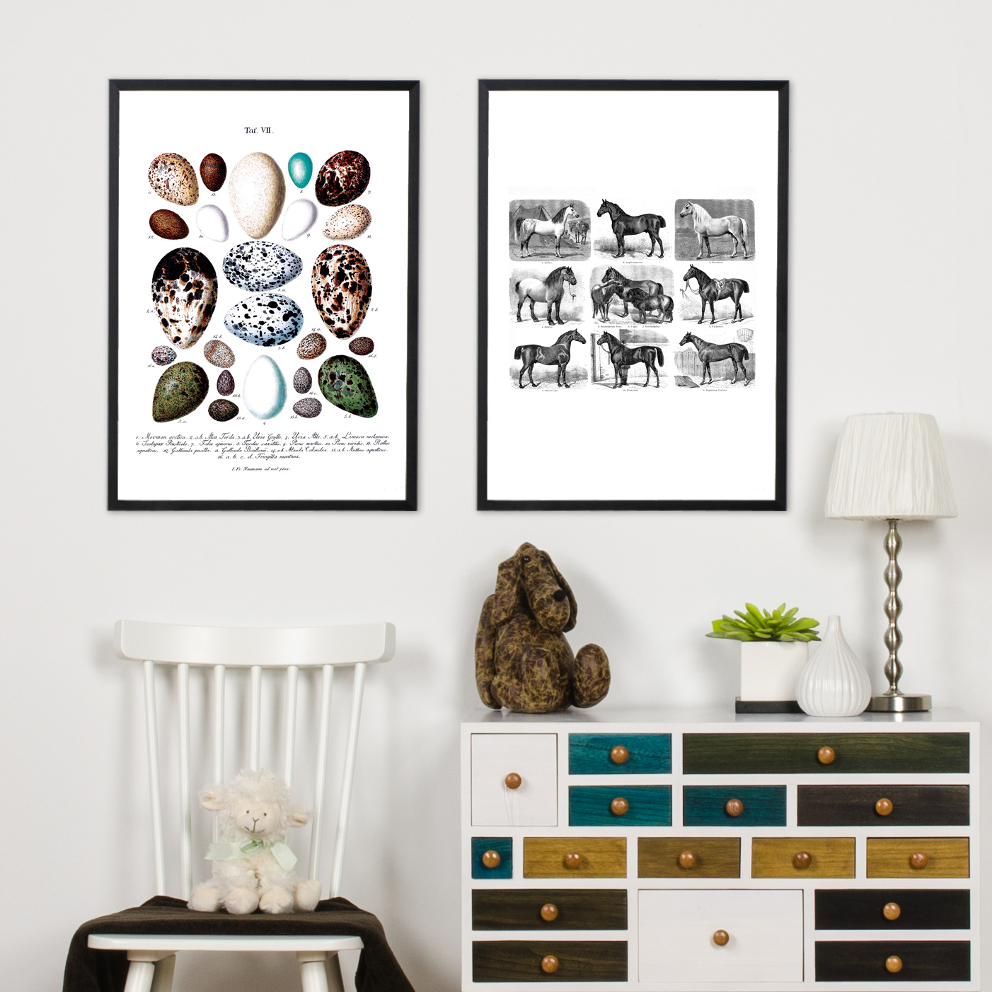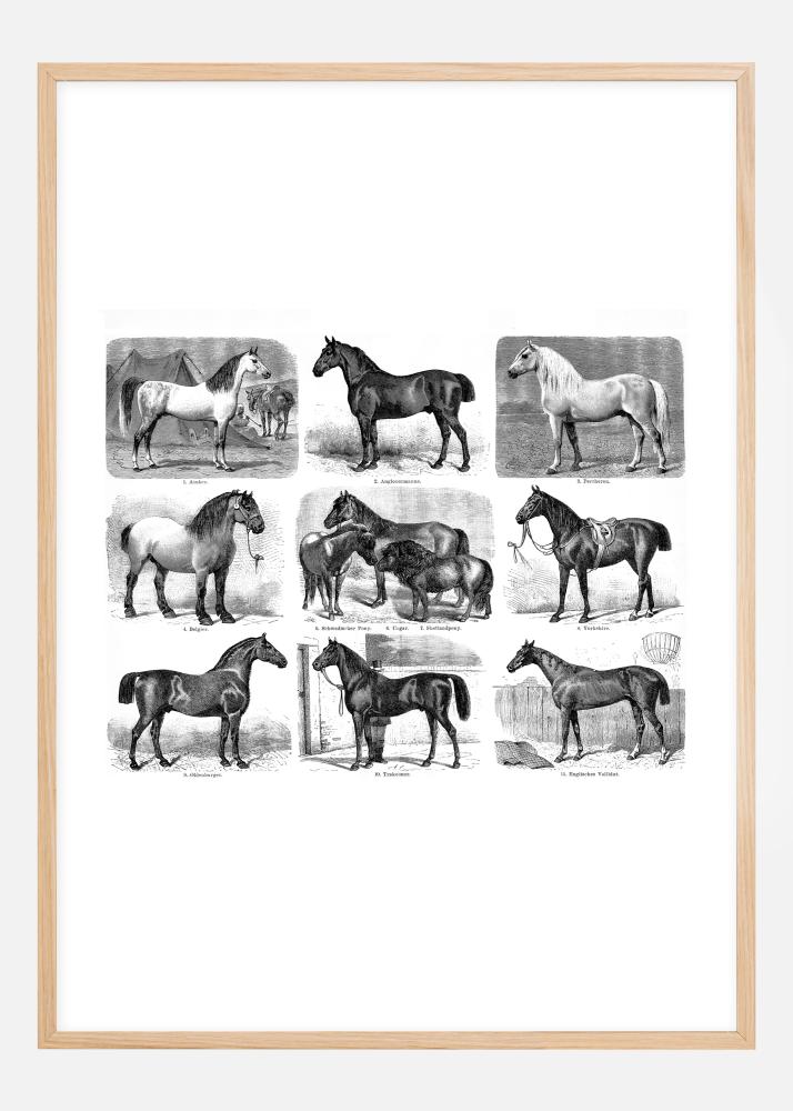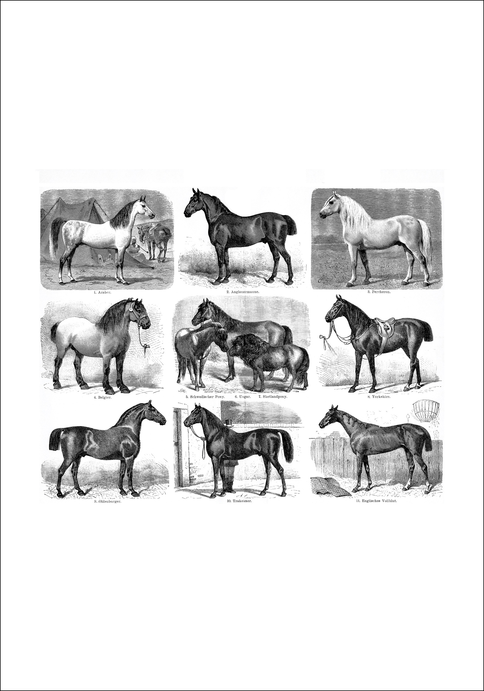 Ha nem tudsz betelni a lovakkal, itt van egy gyönyörű poszter, amely különböző lófajtákat ábrázol. Minden kép alatt megtalálod a fajták nevét angolul írva. Mivel a poszter fekete-fehér, könnyű kombinálni egy szép színű kerettel. A poszter több méretben is elérhető, így alkalmas akár egy komódra helyezve, akár a falra akasztva.