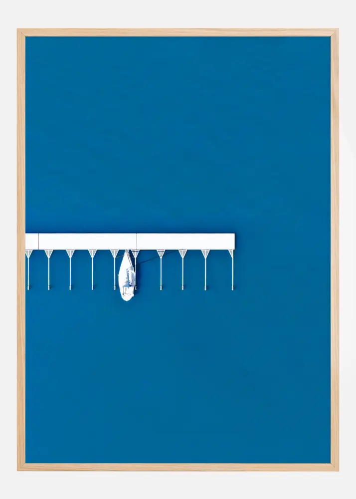 Ez a műalkotás "Lonely Sail" címmel egy fehér vitorlást ábrázol, amely egy móló mentén kötött ki, amely a tiszta, kék vízbe nyúlik. Az erőteljes kontraszt a minimalista fehér hajó és a móló tiszta vonalai, valamint a mélykék háttér között erős vizuális hatást eredményez, amely kiemeli a hajó elszigeteltségét és a nyílt táj szépségét.