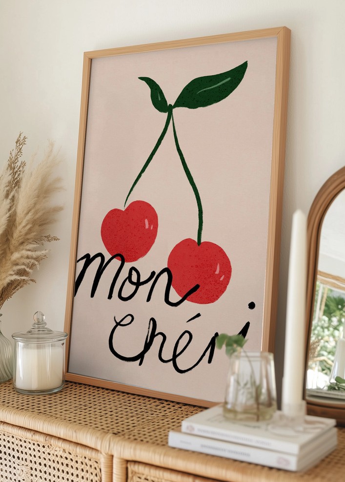 Mon Cheri Cherry Typography Poszter