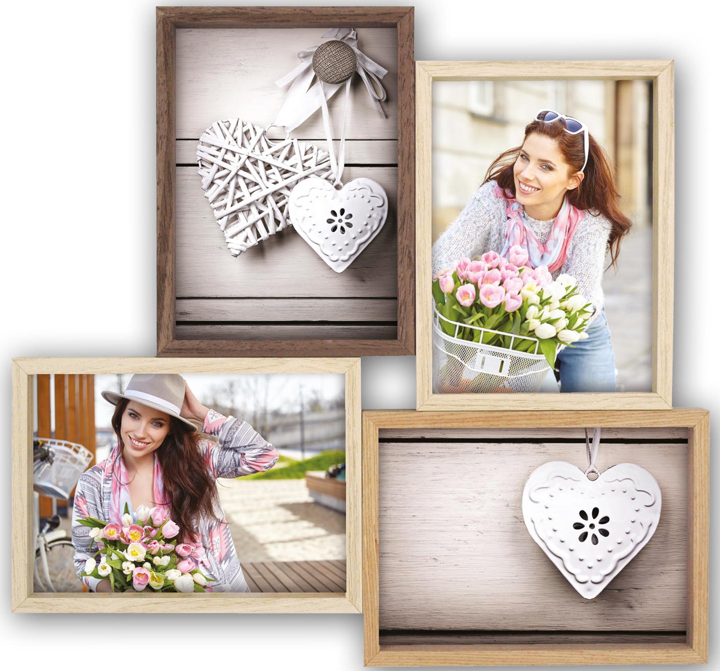 A kollázskeretes képkeret minden egyes képe 10x15 cm-es méretben lehet, amely gyakori méret a fényképek esetében. A keret fából készült, amely természetes és időtálló érzetet nyújt, így a legtöbb otthonban jól mutat.
