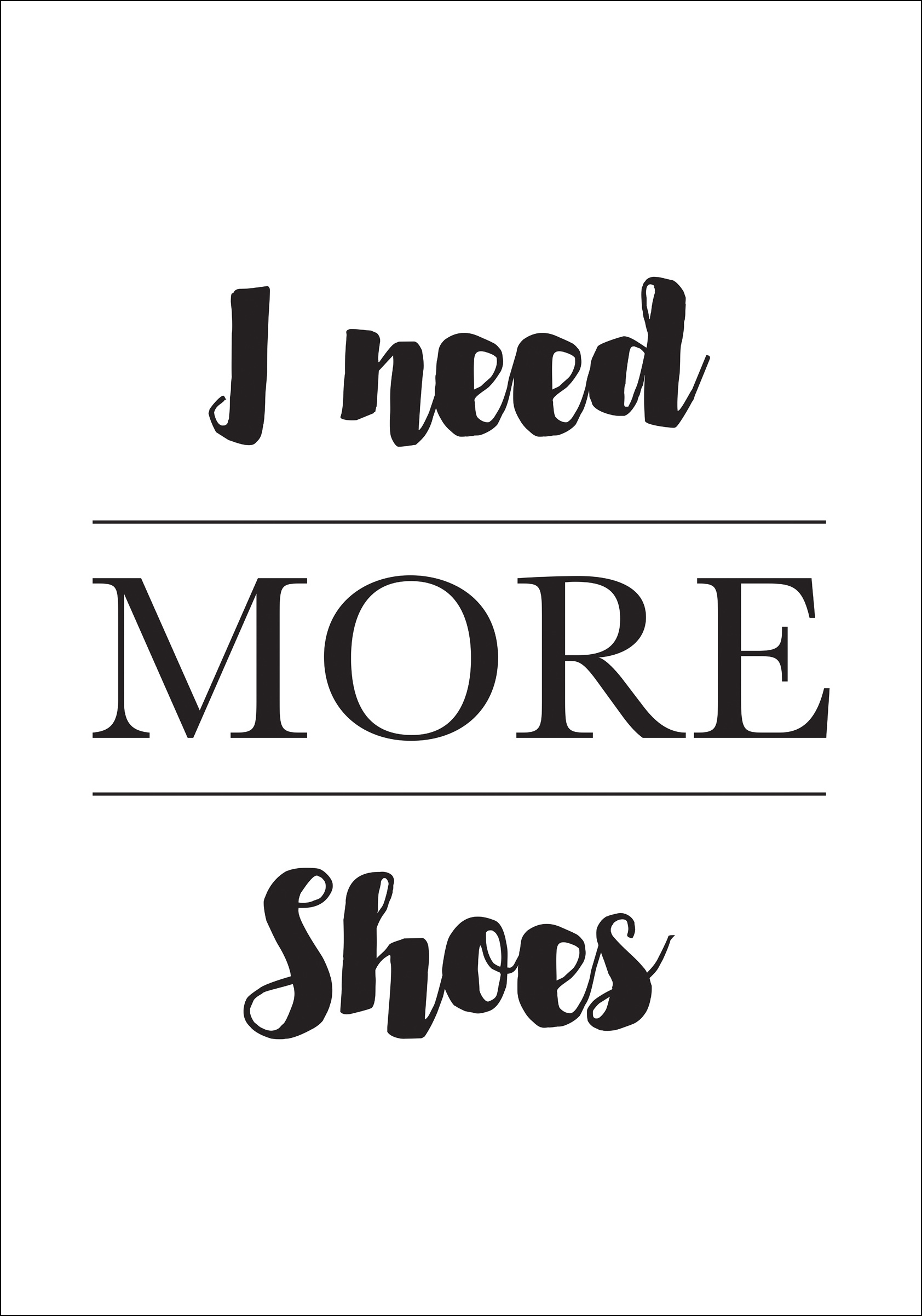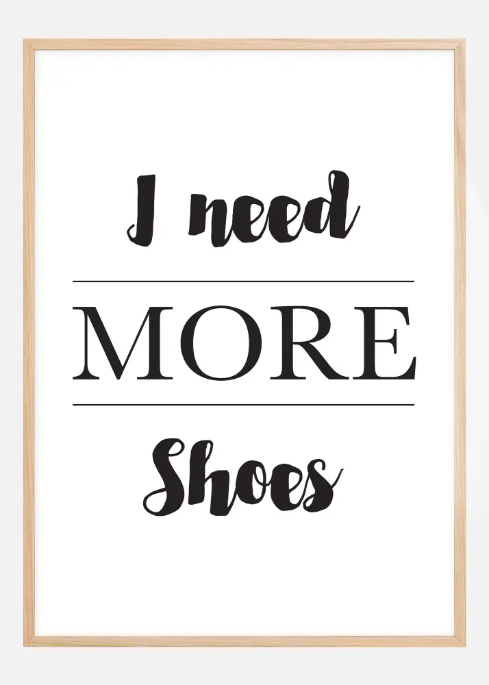 Ha cipőmániás vásárló vagy, ez a poszter tökéletesen illik hozzád! A bájos motívum fekete, és a "Szükségem van több cipőre" szöveget tartalmazza, két különböző betűtípussal nyomtatva. Középen két díszes fekete vonal fut. A stílusos és letisztult design kiválóan mutat fekete vagy fehér kerettel. Ha még személyesebbé szeretnéd tenni, válassz egy keretet a kedvenc színedben. A poszter több különböző méretben elérhető, így könnyedén találhatsz egyet, ami illik az íróasztalodra vagy a faladra.