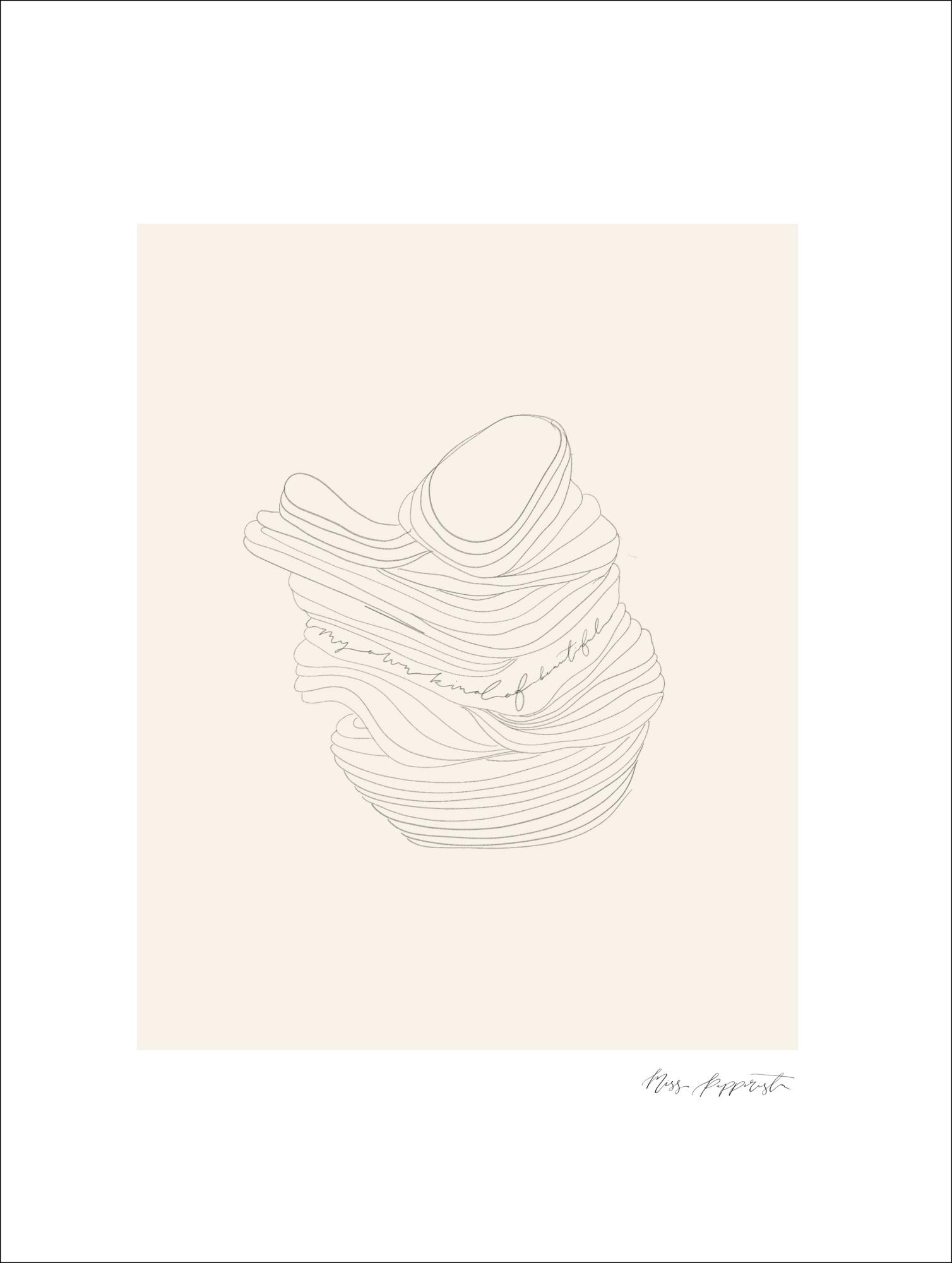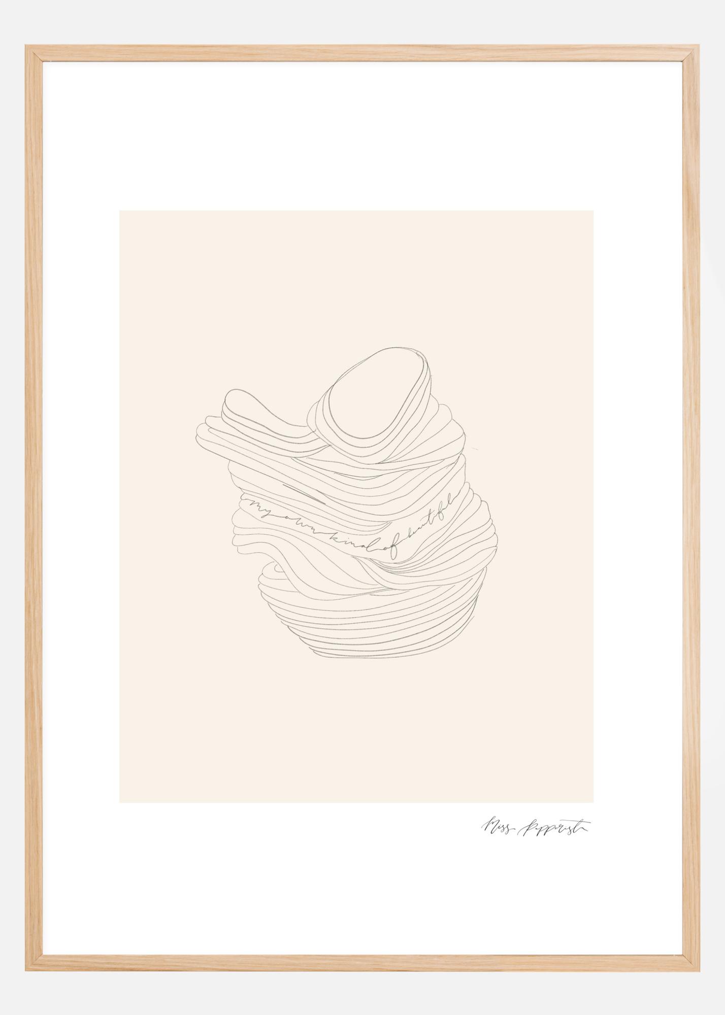 Érdekes rajz egymásra rakott tárgyakról. A bézs színű háttér a bordázott tálra irányítja a tekintetet a képen. Tökéletes nyomat egy beszélgetés megkezdéséhez. Akaszd fel ezt a posztert a nappalidban, és próbáld kitalálni, mik ezek az egymásra rakott tárgyak.
