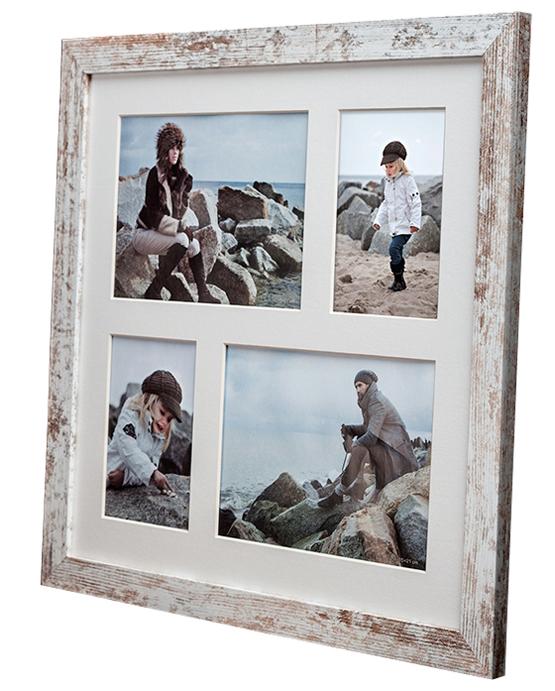 Stílusos vintage keret széles keretprofillal, kopott megjelenéssel fehér és fa színben. További dimenziót ad a képeidhez, és tökéletesen illik, amikor valódi vintage érzést szeretnél. A kollázskeretes keret 4 különböző méretű kép számára biztosít helyet.