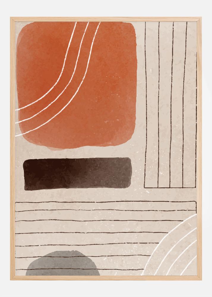 Ez a művészi poszter az absztrakcióra és geometriára játszik rá, és mélyebb reflektálás érzését idézi elő. A motívum egy nagy, telt terrakotta négyzetet tartalmaz, amely horgonyként szolgál a dizájnhoz, körülötte fehér, görbe vonalak futnak, amelyek a mozgás és lágyság érzetét keltik. Ez a meleg, földes szín azonnali melegséget és jó érzést áraszt.