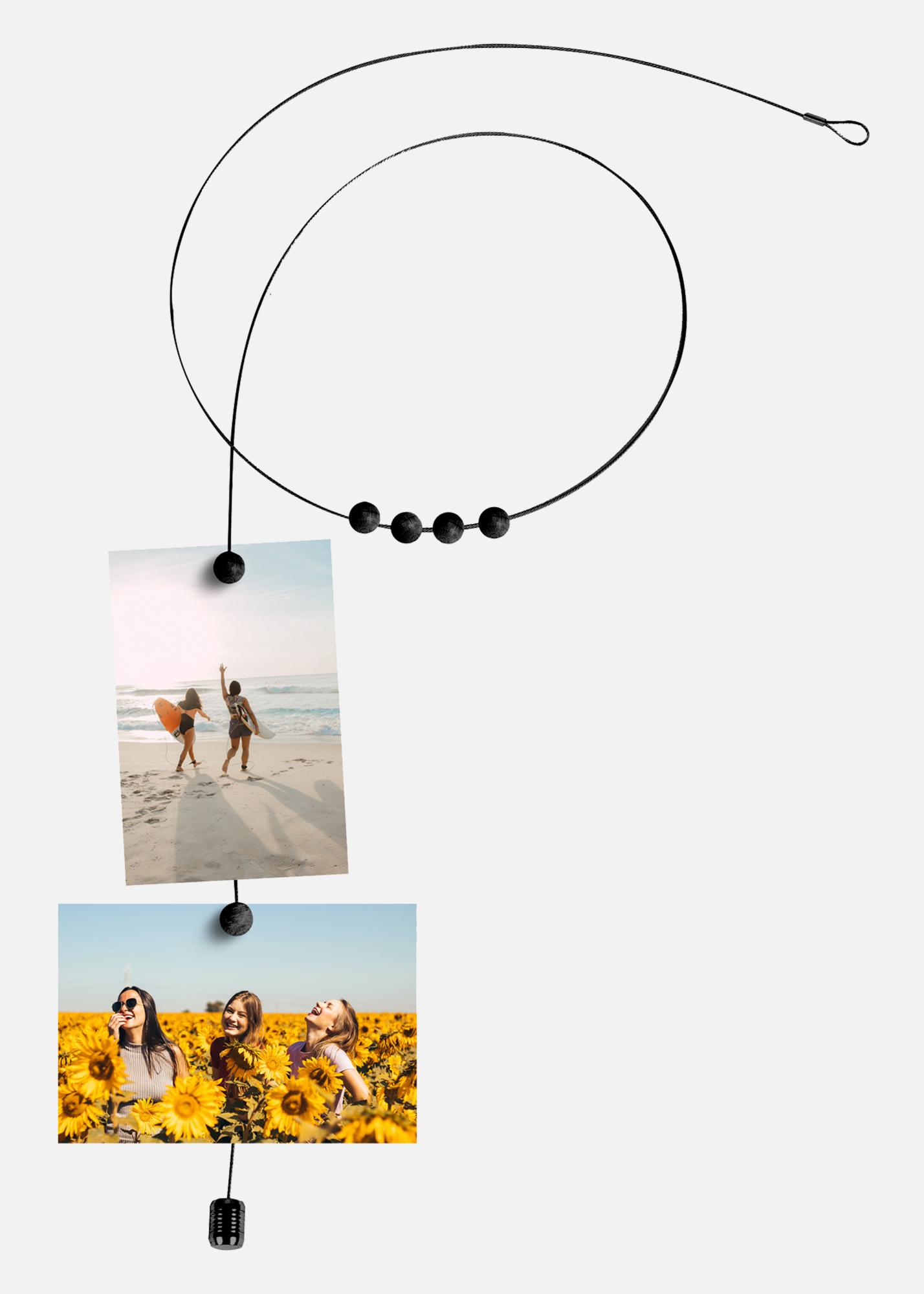 PAC Fotorep Fekete egy mutatós, 150 cm hosszú fotókötél modern fekete színben. Kiváló választás azok számára, akik letisztult és diszkrét felfüggesztést keresnek fényképek, kártyák vagy kis dekorációk számára az otthonban. A kötélhez erős mágnesek tartoznak a könnyű felfüggesztés érdekében.